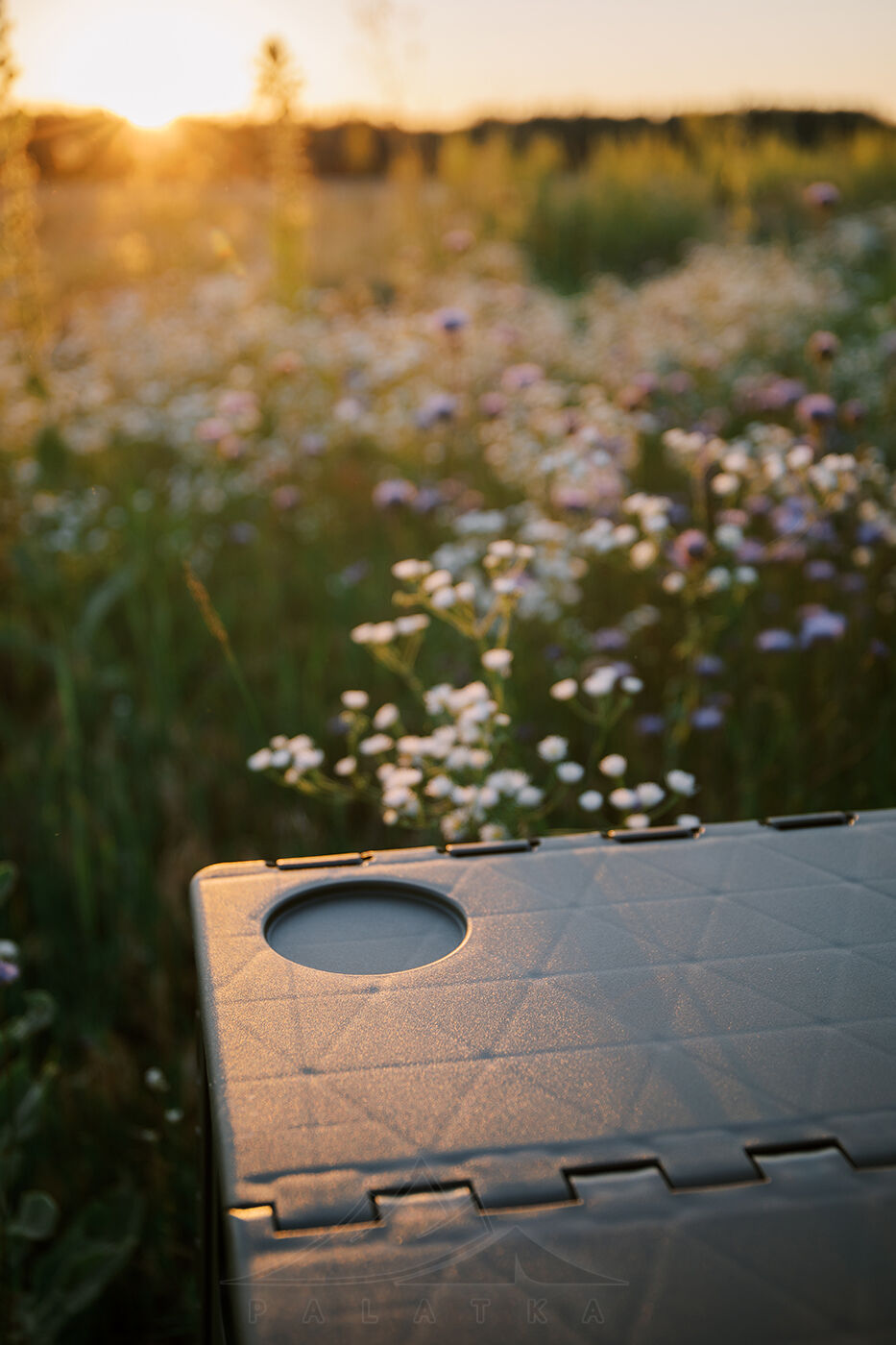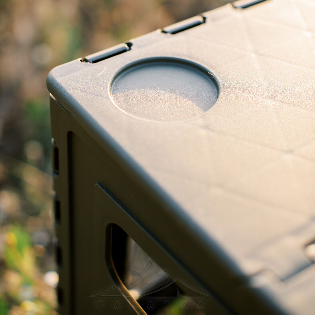 - 4 заглиблення для стаканів або пляшок — зручно під час їжі на природі.