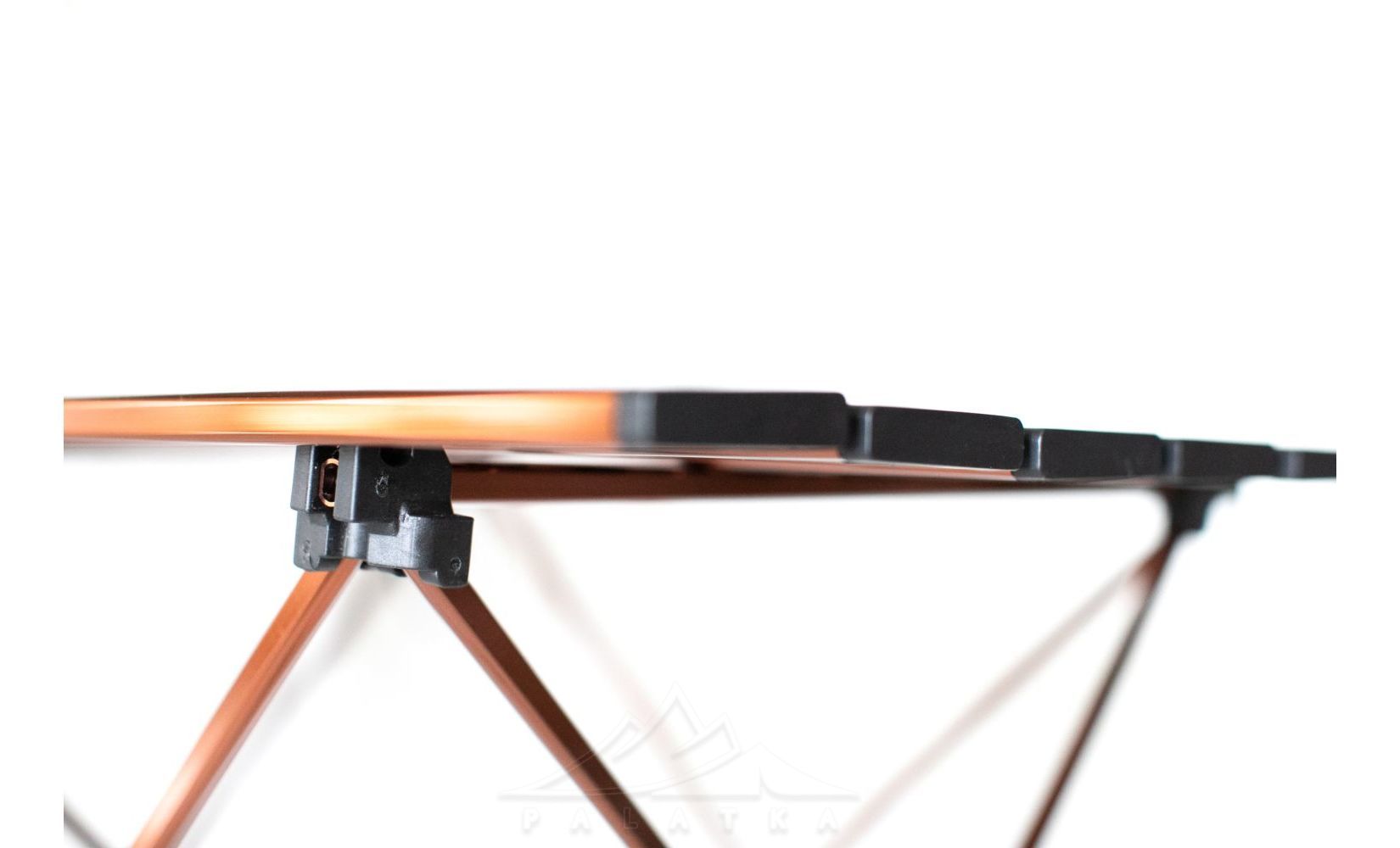 - Каркас столу виготовлений з алюмінію - міцного та стійкого до корозії матеріалу, що полегшує вагу столика, порівняно з аналогами зі сталевим каркасом.