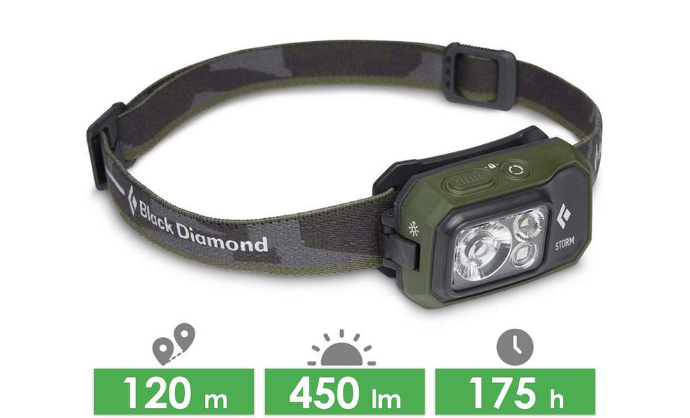 Black Diamond Storm 450 — багатофункціональний яскравий налобний ліхтар, призначений для екстреного та основного освітлення. Стане в нагоді під час походів, подорожей, спорту, або повсякденного використання.