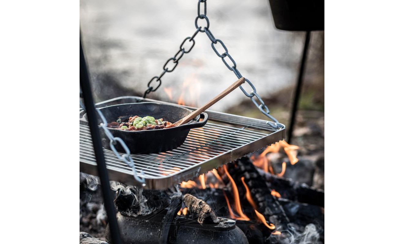 - Решітка-гриль має високі борти, що надійно утримують вміст під час смаження, або підігріву страв. Підходить для встановлення посуду без ручок для підвішування, казанів Petromax Dutch Oven. Розміри решітки 39х39 см.