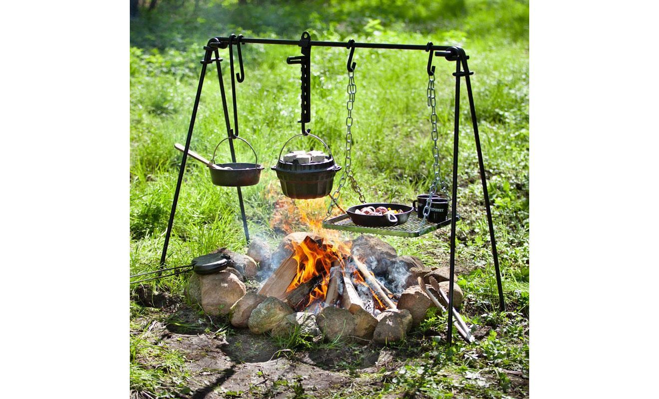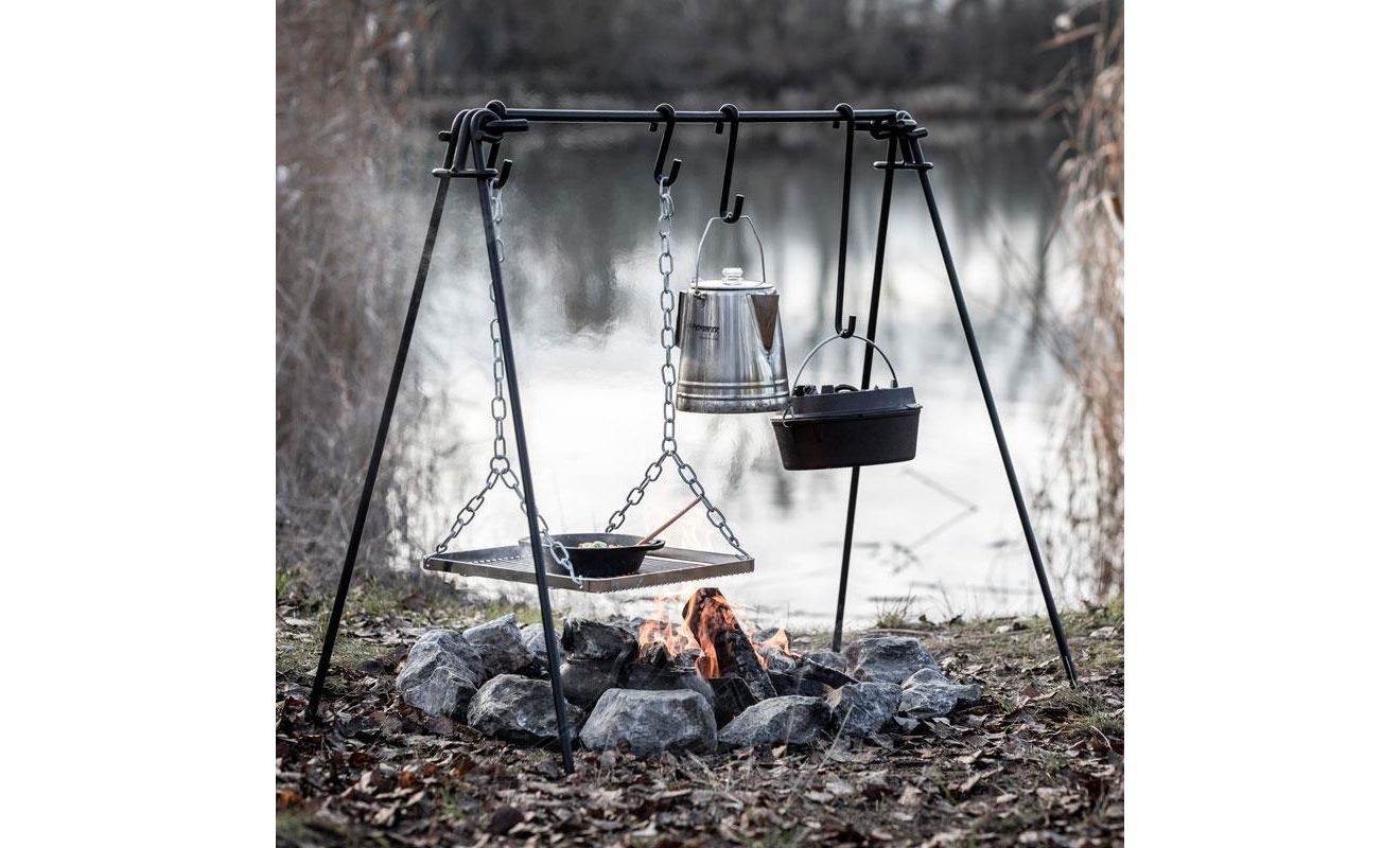 Стійка для приготування на вогнищі Petromax Fire Bridge — універсальна зона для організації кемпінгової кухні з додатковою функцією гриля. Допоможе підвісити та встановити ваш посуд над вогнищем для комфортного приготування одночасно декількох страв в чавунних казанах-жаровнях, сковорідках, тощо, та підігріву напоїв.