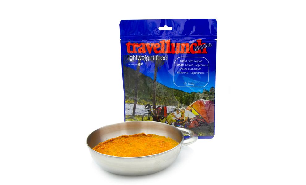 Сублімована страва Travellunch Паста з соусом Наполетана — сбалансована туристична їжа для походів, експедицій та подорожей. Дуже легко приготувати — тільки додати окропу або холодної та трохи зачекати.