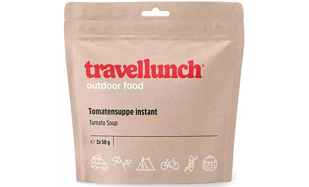 Сублімованна страва Travellunch Томатний суп з грінками — зігріваюча страва, що має насичений смак та збалансовану калорійність — смачна альтернатива домашній страві на природі. Розроблена для мандрівників, туристів та спортсменів. Розрахована на 2 порції.