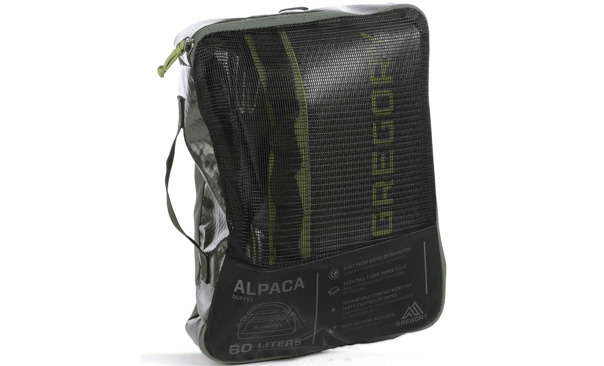 Gregory Alpaca 60 — універсальна сумка-рюкзак, що поєднує водостійкість, витривалість і комфорт у використанні. Завдяки знімним м’яким лямкам її можна зручно носити як рюкзак або переносити в руках. Ідеальний вибір для подорожей, перевезення спорядження та активного відпочинку.