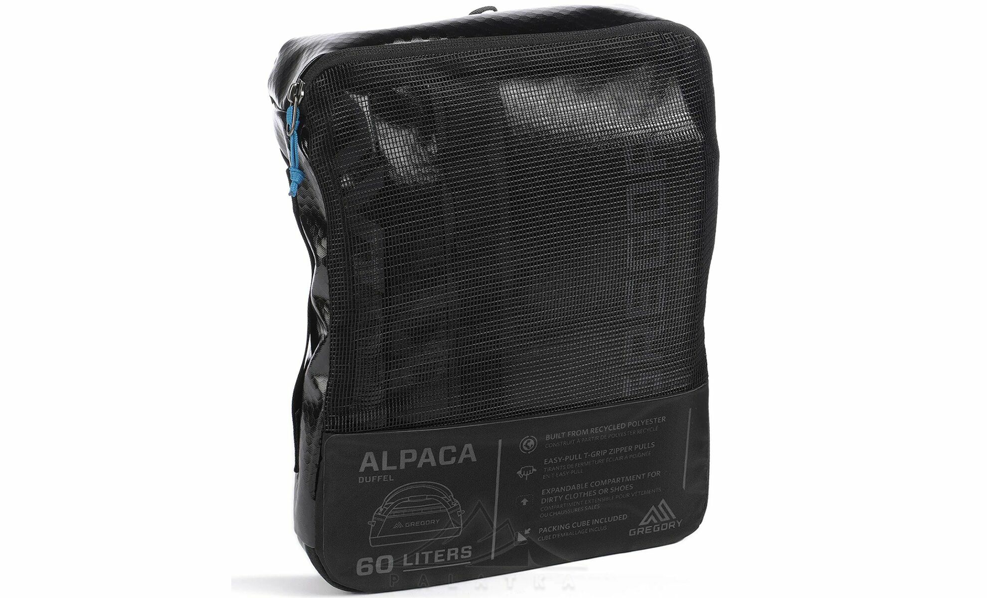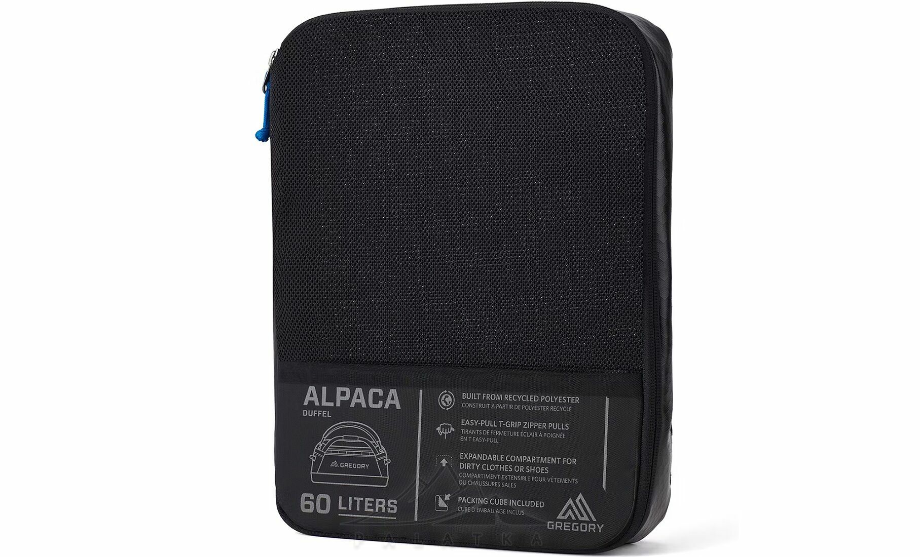 Gregory Alpaca 60 — універсальна сумка-рюкзак, що поєднує водостійкість, витривалість і комфорт у використанні. Завдяки знімним м’яким лямкам її можна зручно носити як рюкзак або переносити в руках. Ідеальний вибір для подорожей, перевезення спорядження та активного відпочинку.