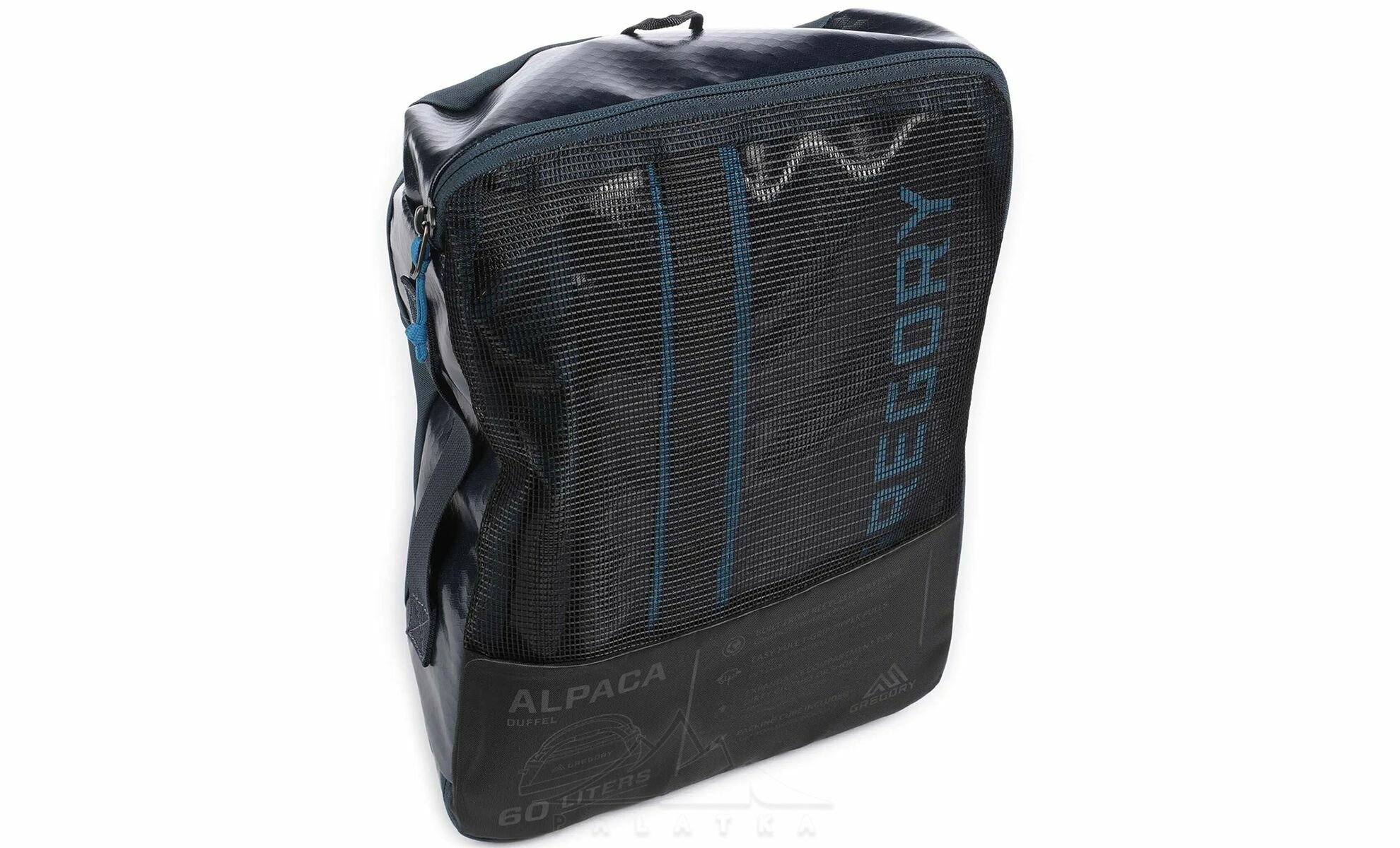 Gregory Alpaca 60 — універсальна сумка-рюкзак, що поєднує водостійкість, витривалість і комфорт у використанні. Завдяки знімним м’яким лямкам її можна зручно носити як рюкзак або переносити в руках. Ідеальний вибір для подорожей, перевезення спорядження та активного відпочинку.