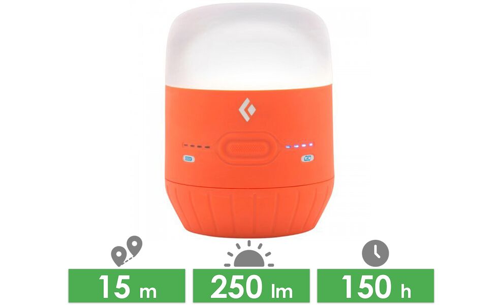 - Максимальна яскравість 250 люмен — достатньо для освітлення столу, намету або зони відпочинку поруч.