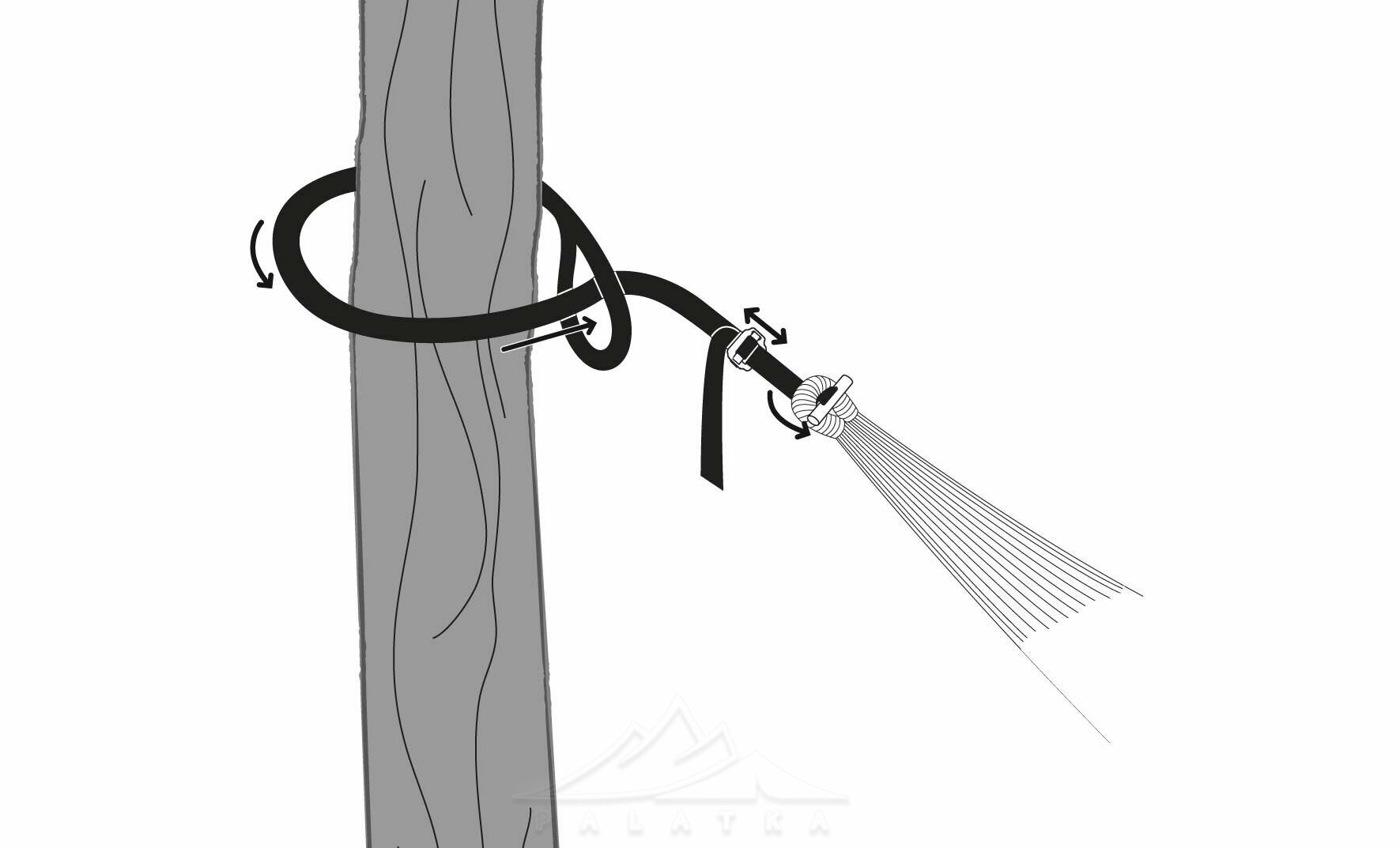 - Стропи мають ширину 25 мм та не врізаються в деревину, не пошкоджують кору дерев