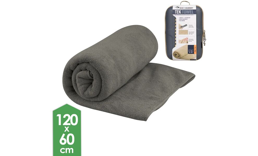 Швидкосохнучий рушник з мікрофібри Sea to Summit Tek Towel підійде для подорожей, кемпінгу, відпочинку на природі, пляжу, тренувань і щоденного використання, коли хочеться отримати максимум комфорту від туристичного рушника. Це вдалий варіант для тих, кому важливе найкраще поглинання серед лінійки, більш домашнє відчуття під час використання, але без переходу до громіздкого класичного рушника.