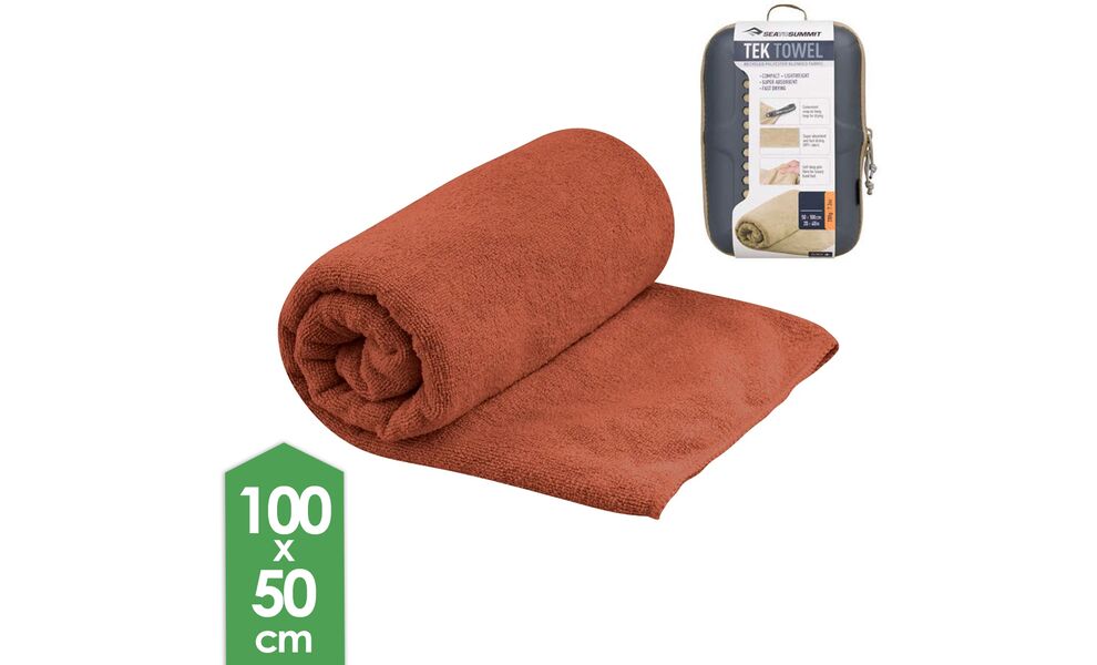Швидкосохнучий рушник з мікрофібри Sea to Summit Tek Towel підійде для подорожей, кемпінгу, відпочинку на природі, пляжу, тренувань і щоденного використання, коли хочеться отримати максимум комфорту від туристичного рушника. Це вдалий варіант для тих, кому важливе найкраще поглинання серед лінійки, більш домашнє відчуття під час використання, але без переходу до громіздкого класичного рушника.