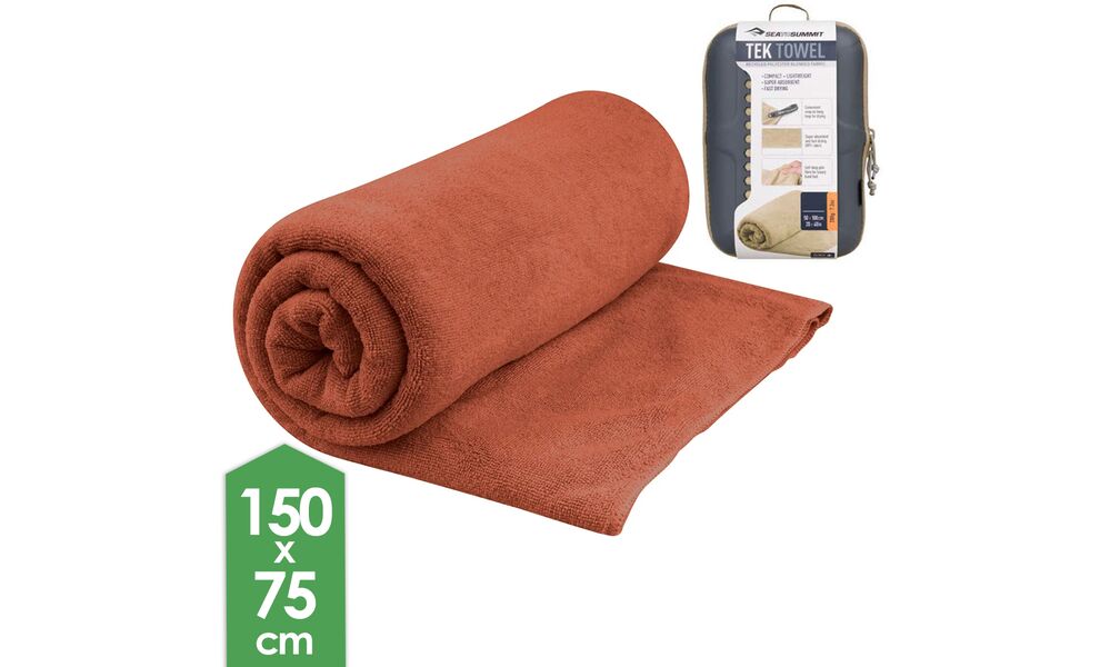 Швидкосохнучий рушник з мікрофібри Sea to Summit Tek Towel підійде для подорожей, кемпінгу, відпочинку на природі, пляжу, тренувань і щоденного використання, коли хочеться отримати максимум комфорту від туристичного рушника. Це вдалий варіант для тих, кому важливе найкраще поглинання серед лінійки, більш домашнє відчуття під час використання, але без переходу до громіздкого класичного рушника.