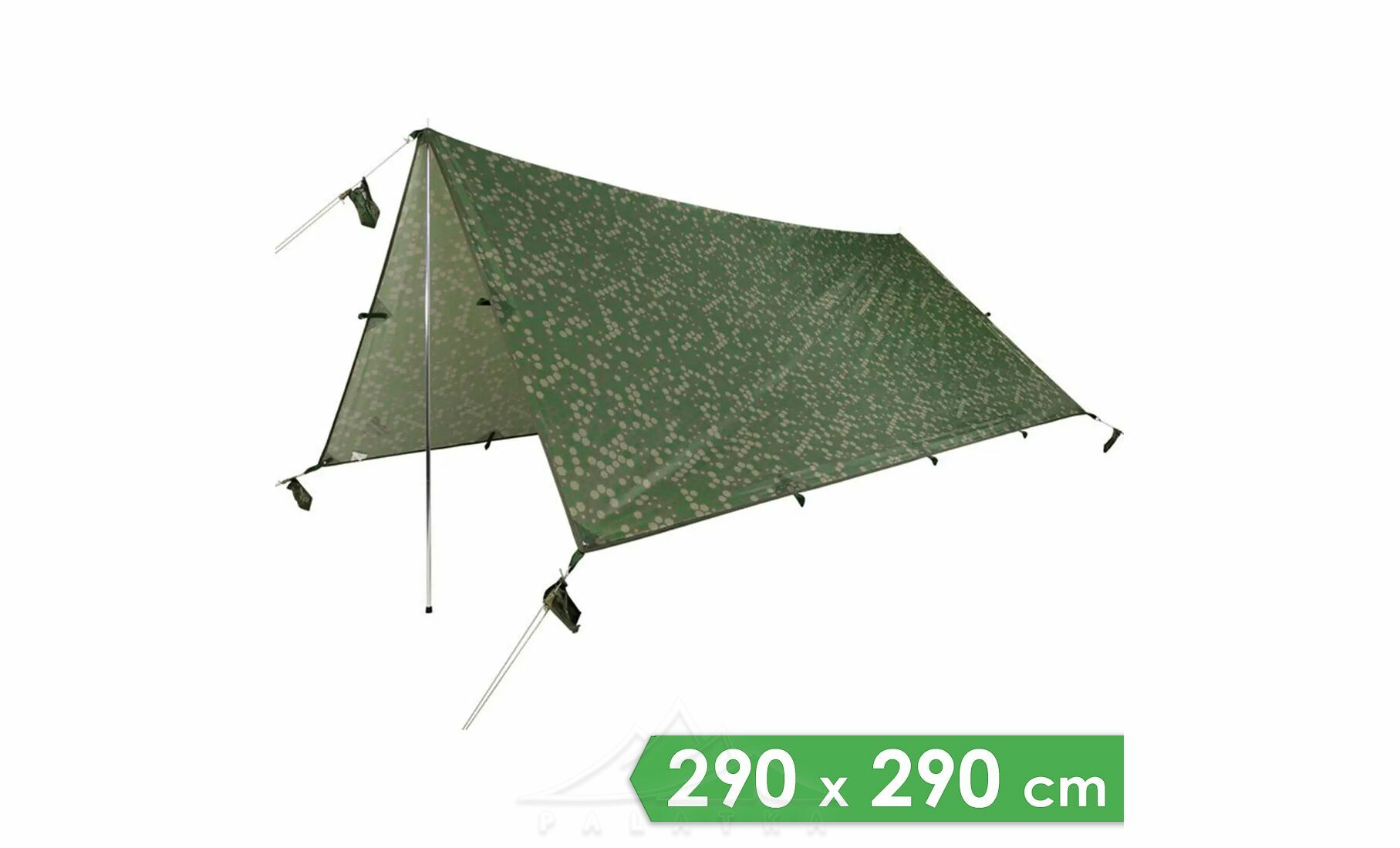 - 6 люверсів по краях дозволяють встановлювати тент із додатковими стійками або трекінговими палицями.