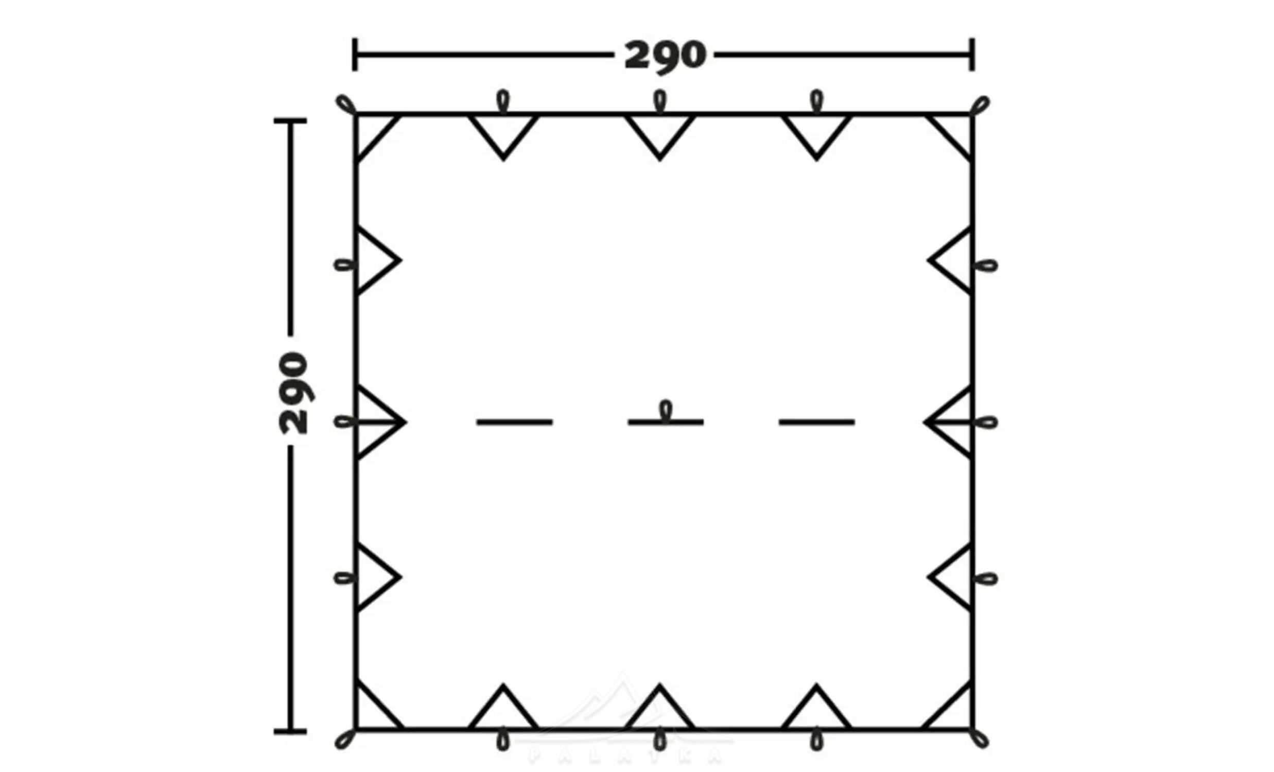 - 16 посилених петель по периметру та одна центральна точка кріплення забезпечують різноманітні варіанти встановлення тенту.