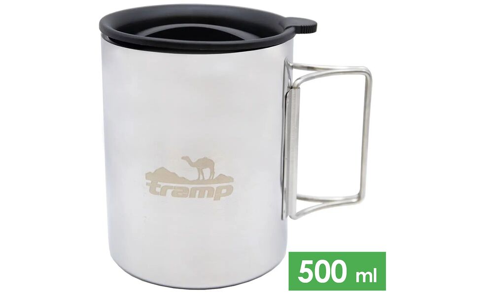 Туристична термочашка з кришкою та складною ручкою Tramp UTRC-142 (Metal) на 500 мл, нержавіюча сталь