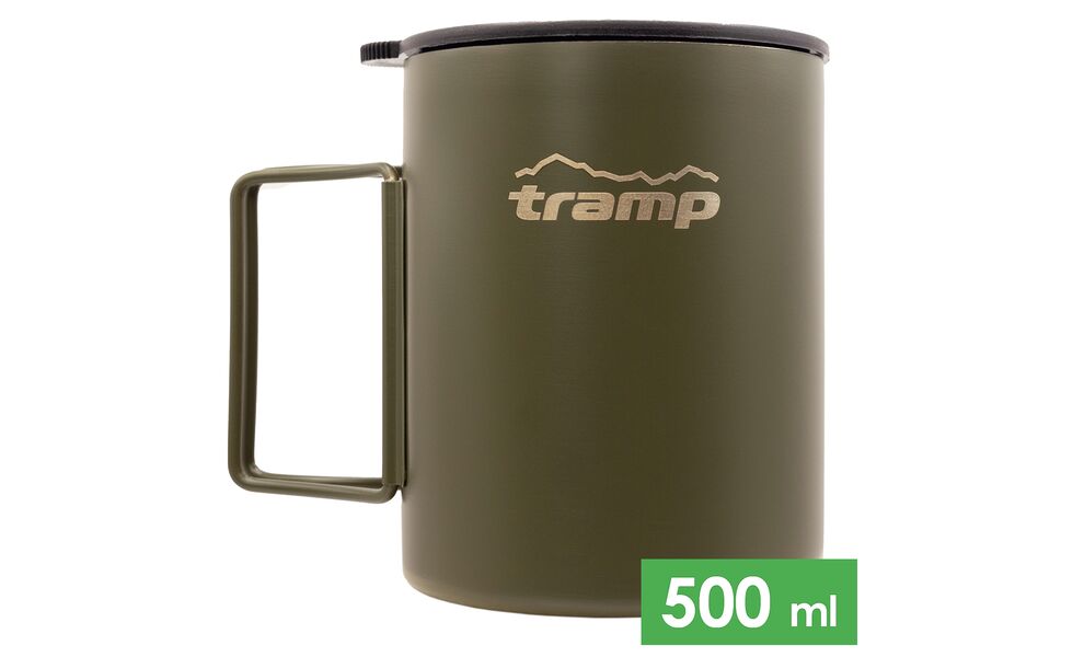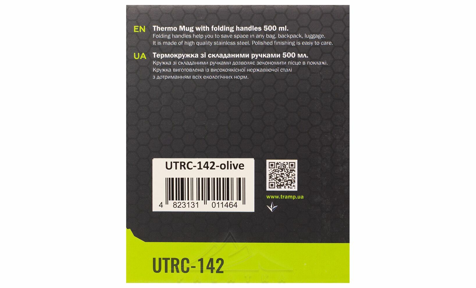 Туристична термочашка з кришкою та складною ручкою Tramp UTRC-142 (Olive) на 500 мл, нержавіюча сталь