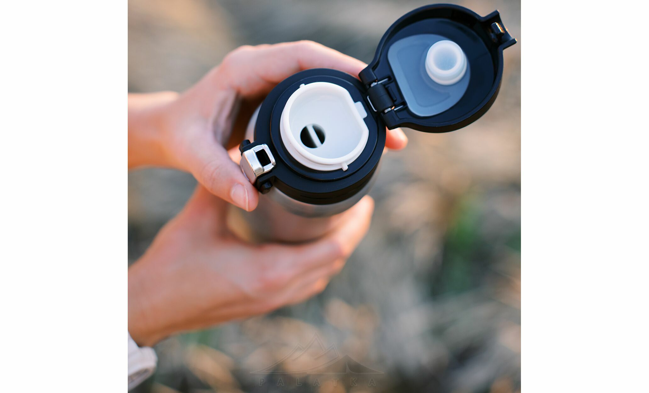 • Кришка-поїлка дозволяє зручно пити з термокружки на ходу, не відкриваючи її повністю.