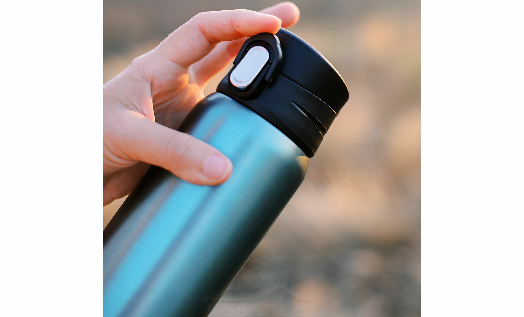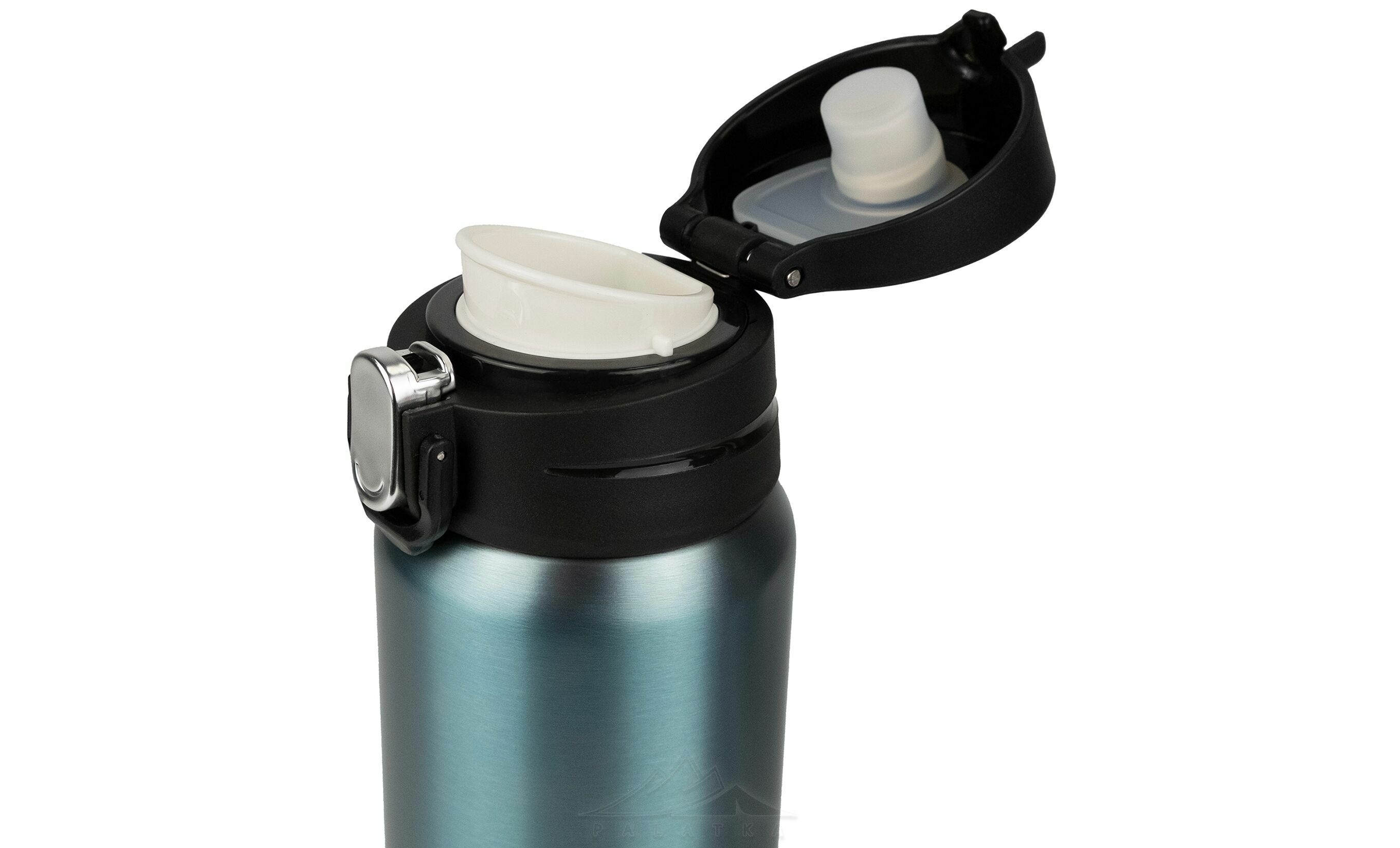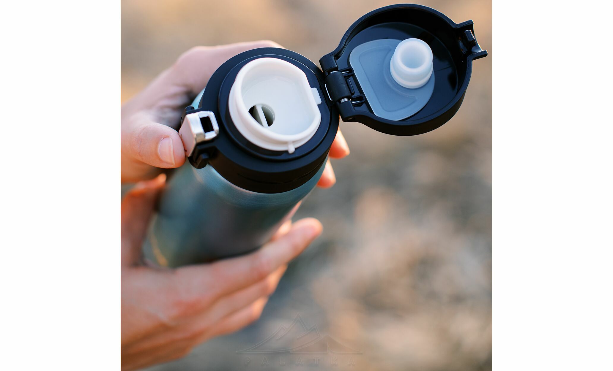 - Кришка-поїлка дозволяє зручно пити з термокружки на ходу, не відкриваючи її повністю.
