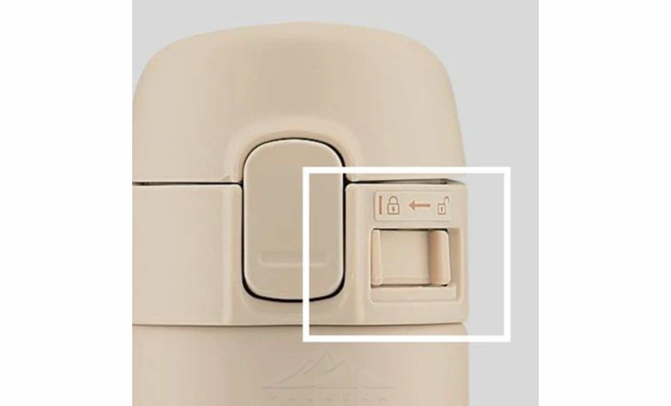 - Герметична кришка з кнопковим механізмом — легко відкривається однією рукою, забезпечує зручне наливання в чашку та має запобіжник від випадкового відкривання й протікання.