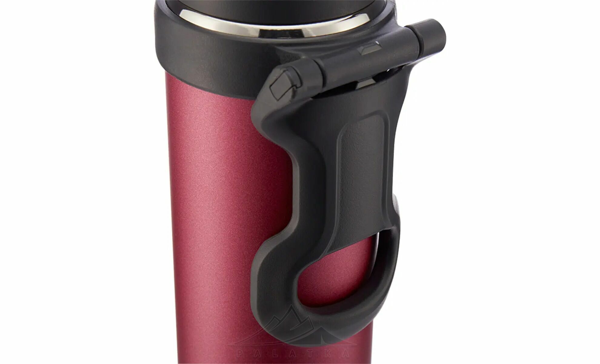 - Ергономічна складна ручка забезпечує комфортне утримання термокружки, зручну фіксацію на спорядженні або одязі (як кліпса), що дозволяє завжди мати її під рукою. Має фіксатори положення для комфортного транспортування та перенесення.
