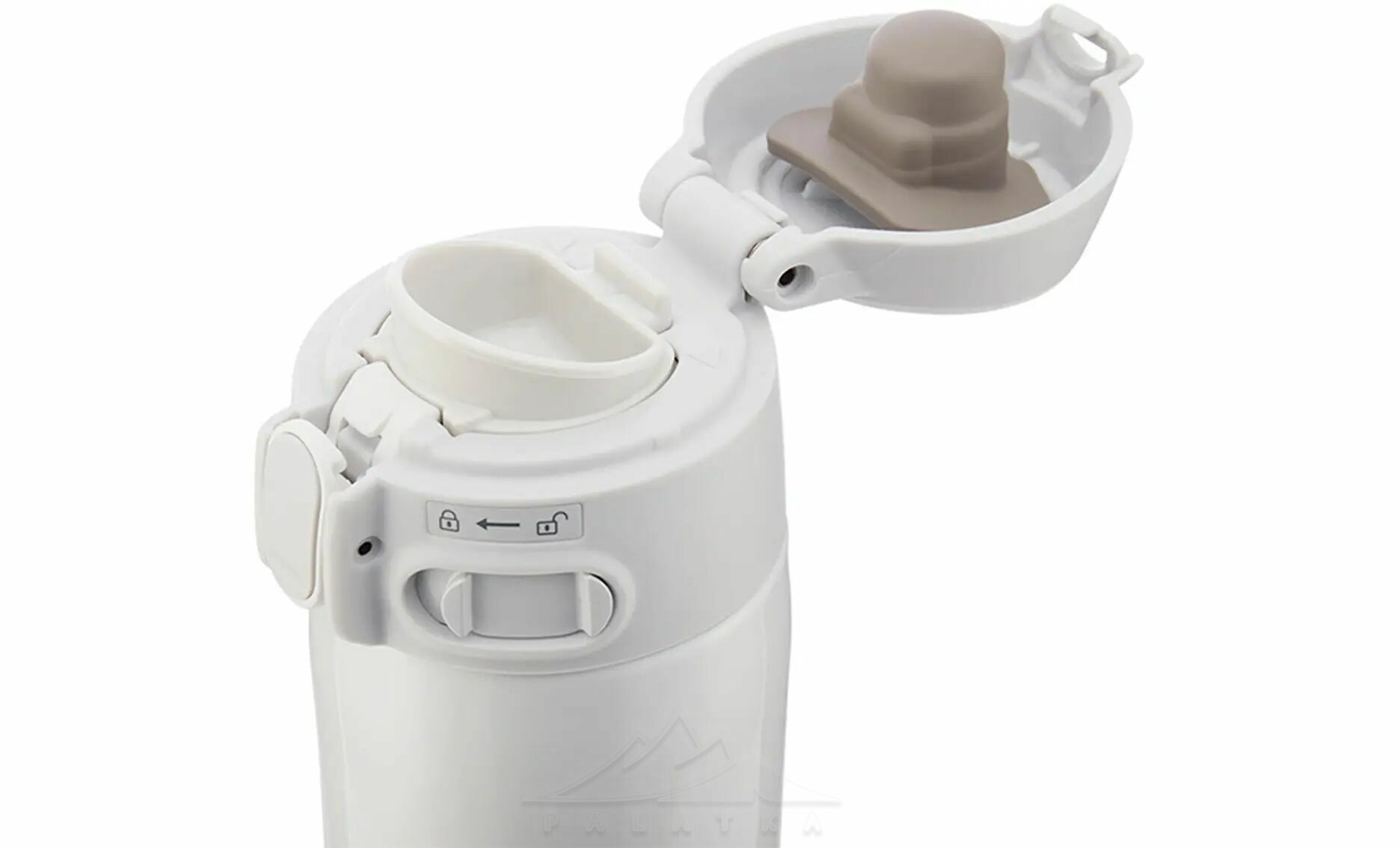 - Кришка-поїлка з термостійкого поліпропілену запобігає опікам і зручна для пиття на ходу, а спеціальний отвір у поїлці забезпечує плавне наливання напою без бризок чи переливання.