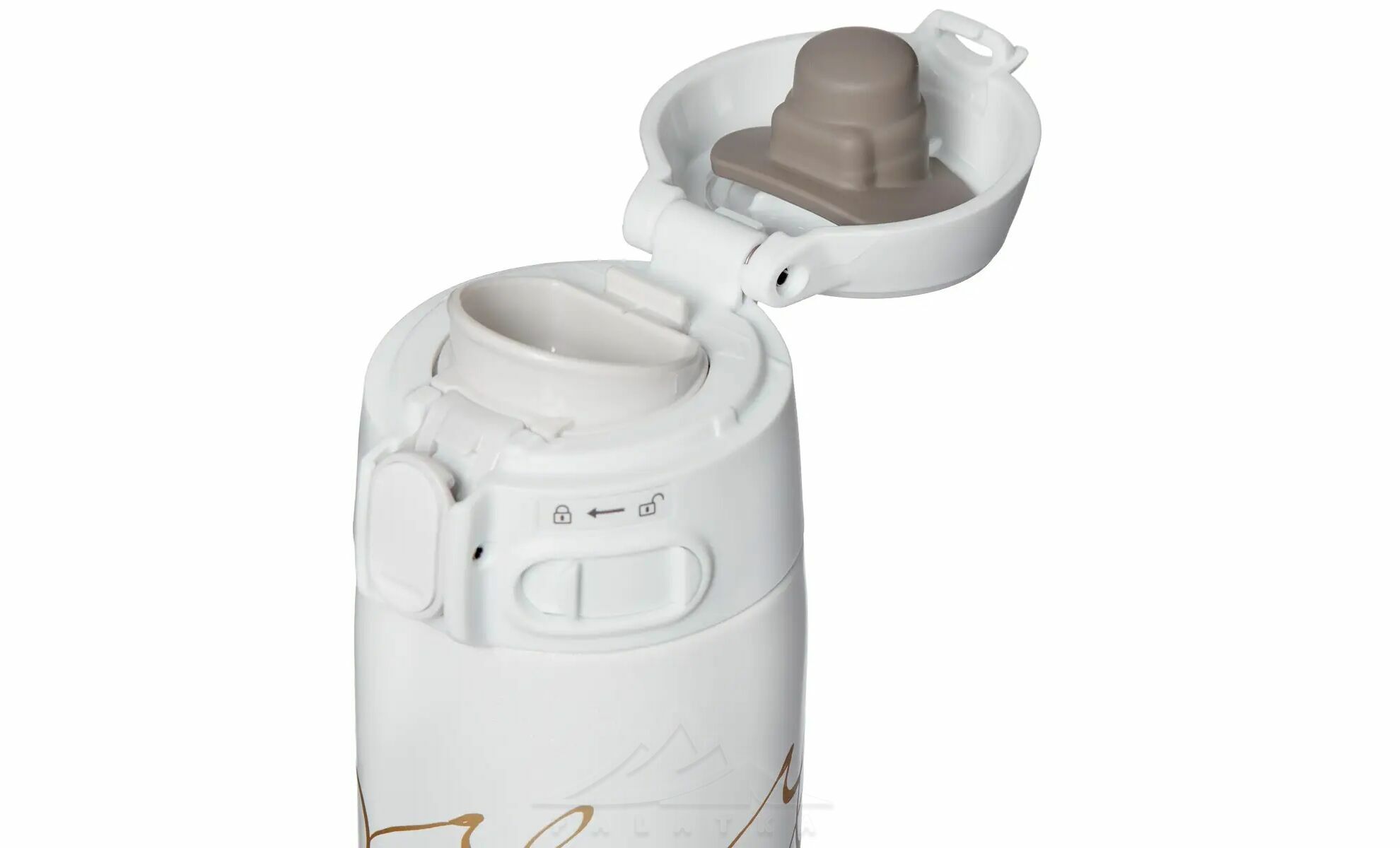 - Кришка-поїлка з термостійкого поліпропілену запобігає опікам і зручна для пиття на ходу, а спеціальний отвір у поїлці забезпечує плавне наливання напою без бризок чи переливання.