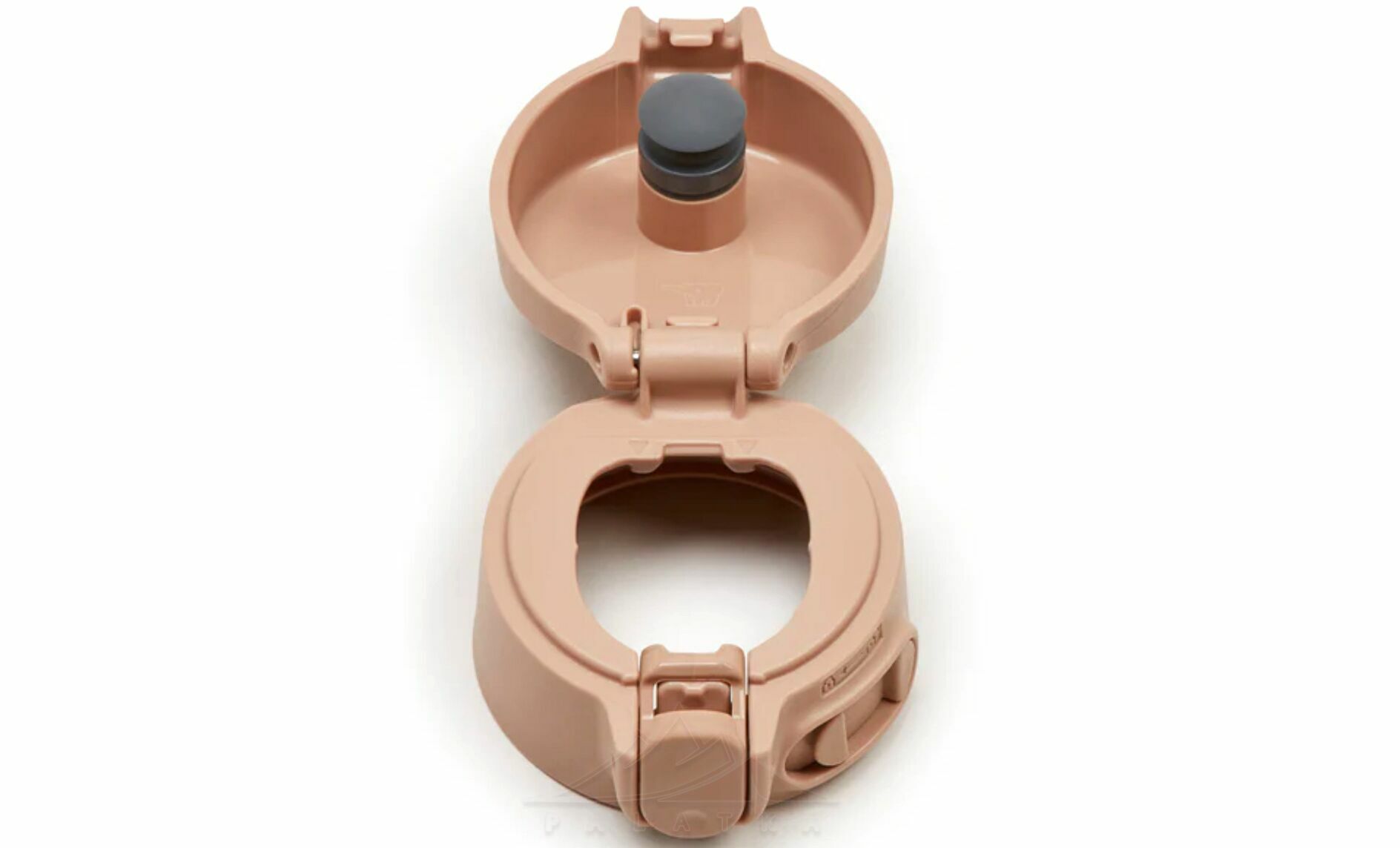 - Герметична кришка з кнопковим механізмом — легко відкривається однією рукою та має запобіжник від випадкового відкривання й протікання.