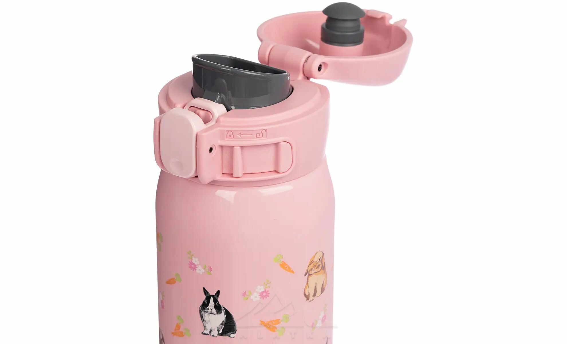 - Кришка-поїлка з термостійкого поліпропілену запобігає опікам і зручна для пиття на ходу, а спеціальний отвір у поїлці забезпечує плавне наливання напою без бризок чи переливання.