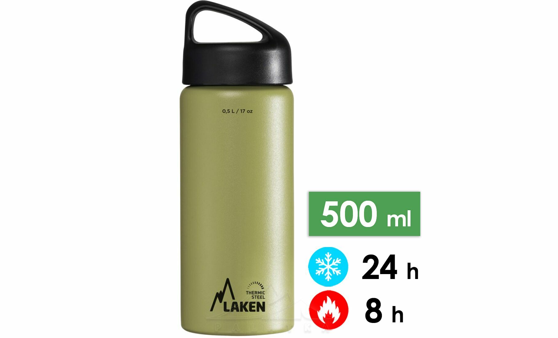 Термопляшка Laken Classic Thermo — це пляшка із класичним широким горлечком. Вона має подвійні стінки і вакуумну ізоляцію, що дозволяє їй зберігати температуру рідини, яка знаходиться всередині.