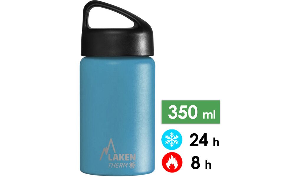 Термопляшка Laken Classic Thermo — це пляшка із класичним широким горлечком. Вона має подвійні стінки і вакуумну ізоляцію, що дозволяє їй зберігати температуру рідини, яка знаходиться всередині.