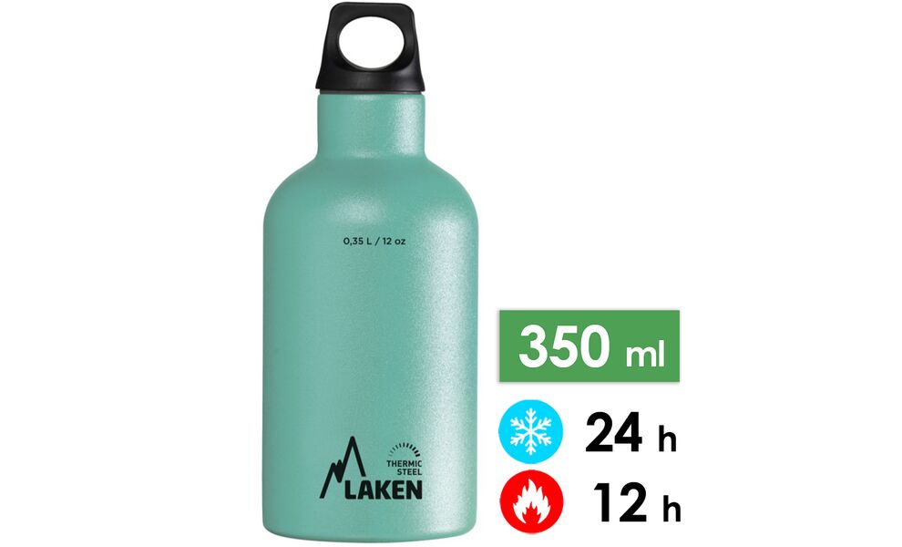 Термопляшка Laken Futura Thermo — це пляшка із вузьким горлечком. Вона має подвійні стінки і вакуумну ізоляцію, що дозволяє їй зберігати температуру рідини, яка знаходиться всередині.