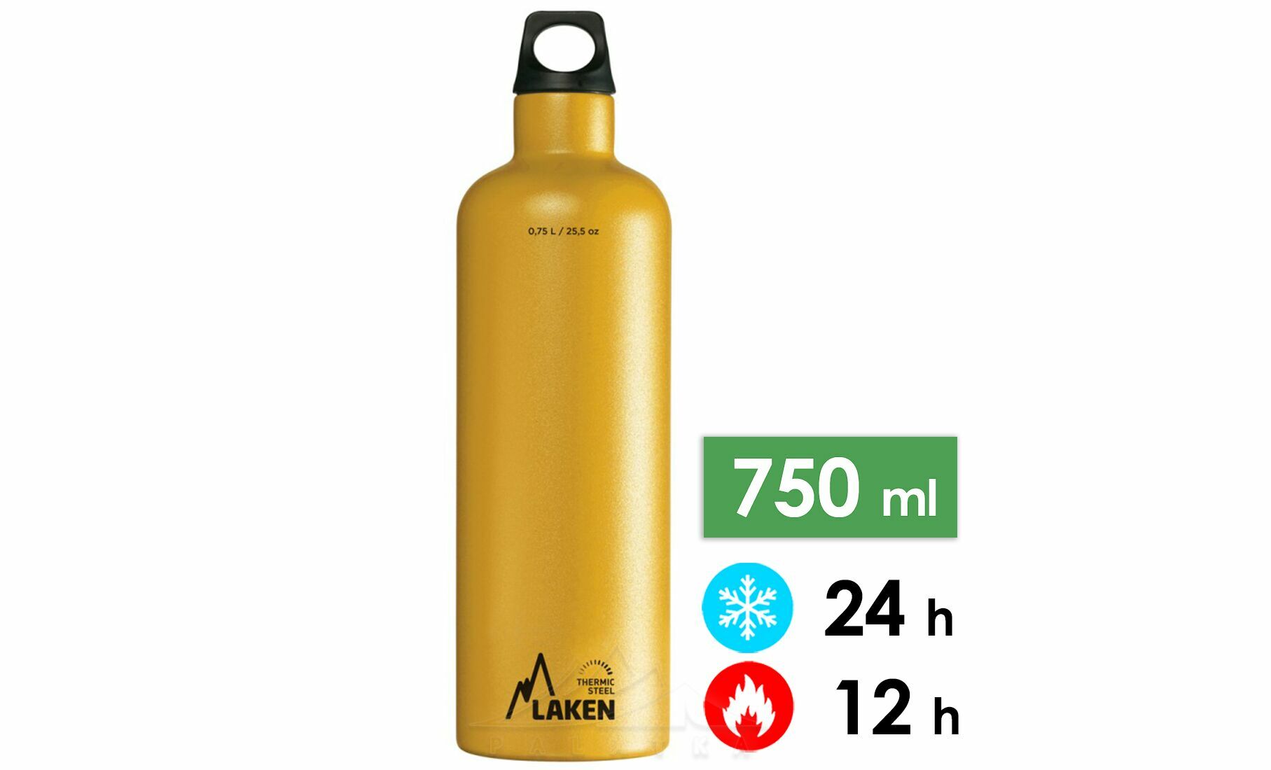Термопляшка Laken Futura Thermo — це пляшка із вузьким горлечком. Вона має подвійні стінки і вакуумну ізоляцію, що дозволяє їй зберігати температуру рідини, яка знаходиться всередині.