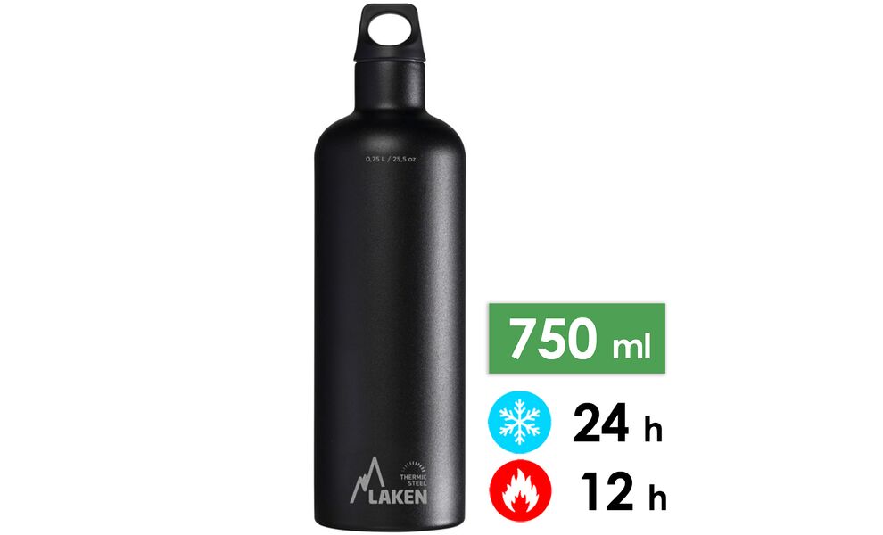 Термопляшка Laken Futura Thermo — це пляшка із вузьким горлечком. Вона має подвійні стінки і вакуумну ізоляцію, що дозволяє їй зберігати температуру рідини, яка знаходиться всередині.