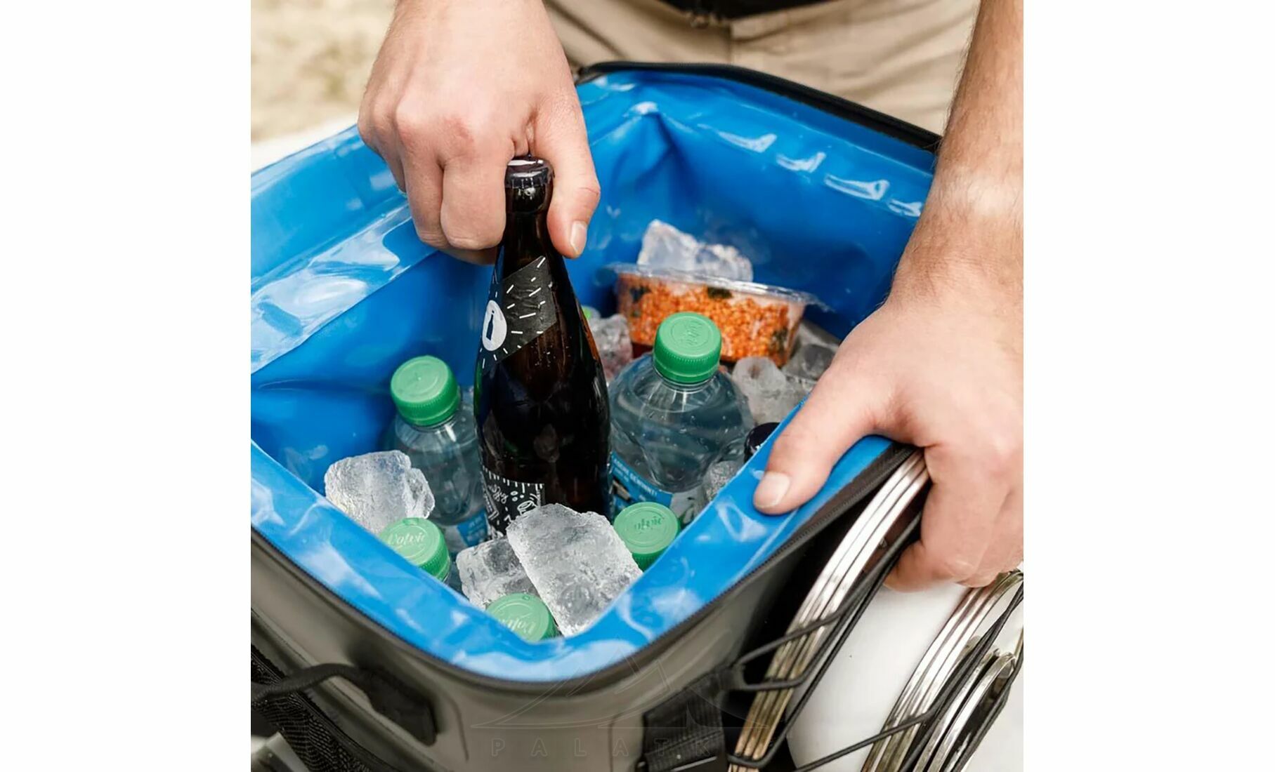 - Водонепроникна блискавка на кришці захистить вміст від протікання талої води (не є повністю водонепроникною, рекомендується не транспортувати в перевернутому положенні).