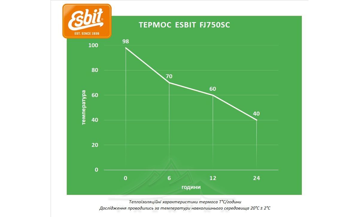 Термос для їжі Esbit FJ750SC — це вакуумний термопосуд, який збереже температуру ваших улюблених страв протягом тривалого часу. Він попіклується як про гарячий суп, так і про «друге». Модель комплектується пробкою, що має кнопку для скидання тиску.