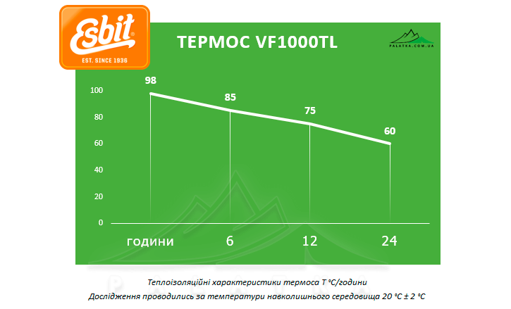 Термос Esbit VF1000TL — це вакуумний термопосуд, який збереже температуру ваших улюблених напоїв протягом тривалого часу. Він попіклується як про гарячу каву, так і про холодний чай. Термос має класичну гвинтову пробку та додаткову чашку.