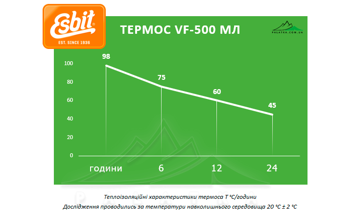 Термос Esbit VF500ML — це вакуумний термопосуд, який збереже температуру ваших улюблених напоїв протягом тривалого часу. Термос має одразу дві пробки, які можна змінювати, а також додаткову чашку.