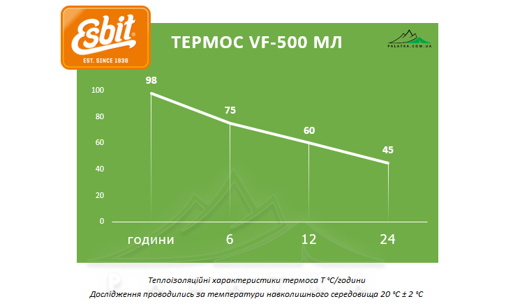 Термос Esbit VF500ML — це вакуумний термопосуд, який збереже температуру ваших улюблених напоїв протягом тривалого часу. Термос має одразу дві пробки, які можна змінювати, а також додаткову чашку.