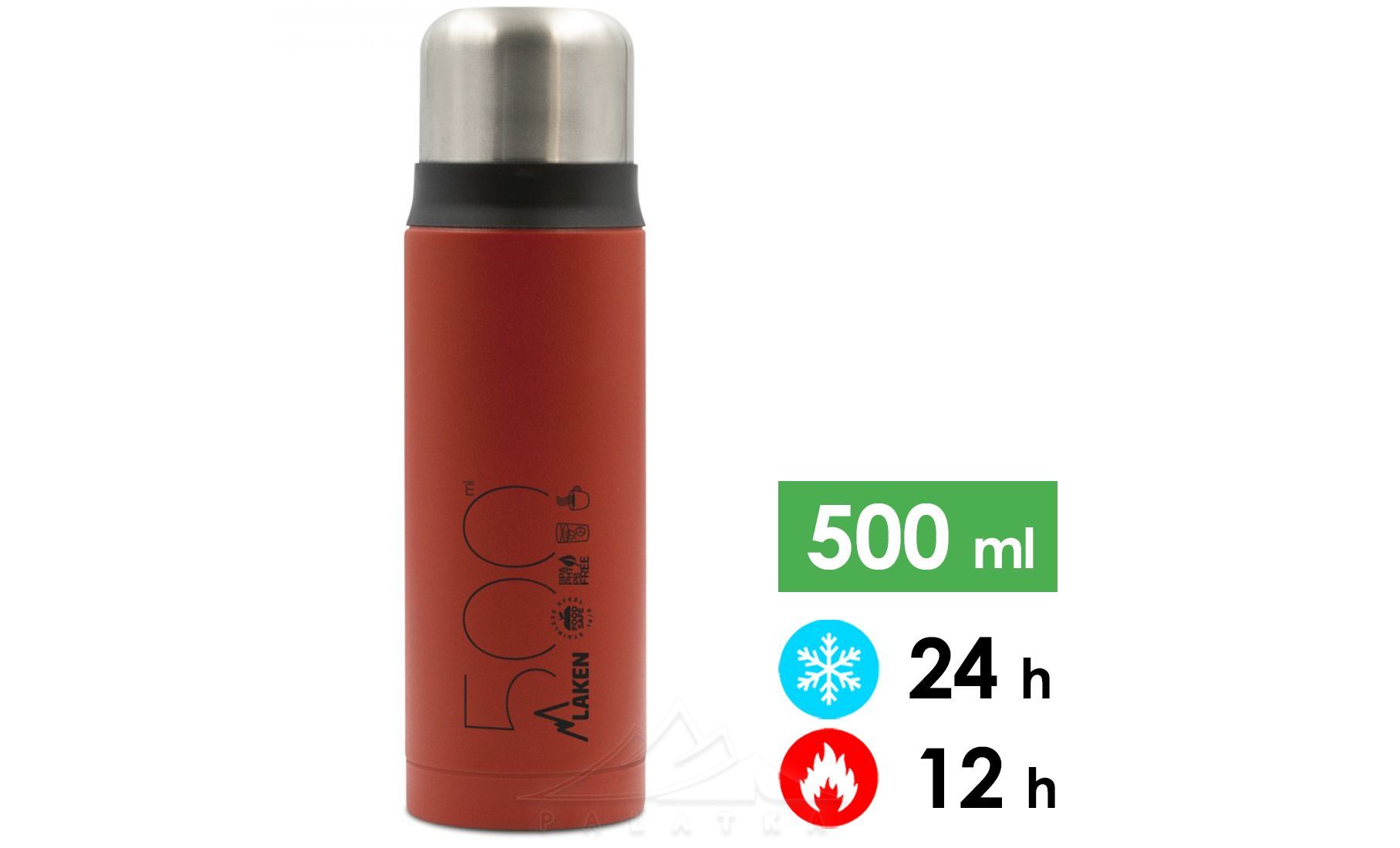 Термос Laken Thermo Liquids Flask  — це вакуумний термопосуд, який збереже температуру ваших улюблених напоїв протягом тривалого часу. Він попіклується як про гарячу каву, так і про холодний чай. Термос має класичну форму, гвинтову пробку та кришку-чашку.
