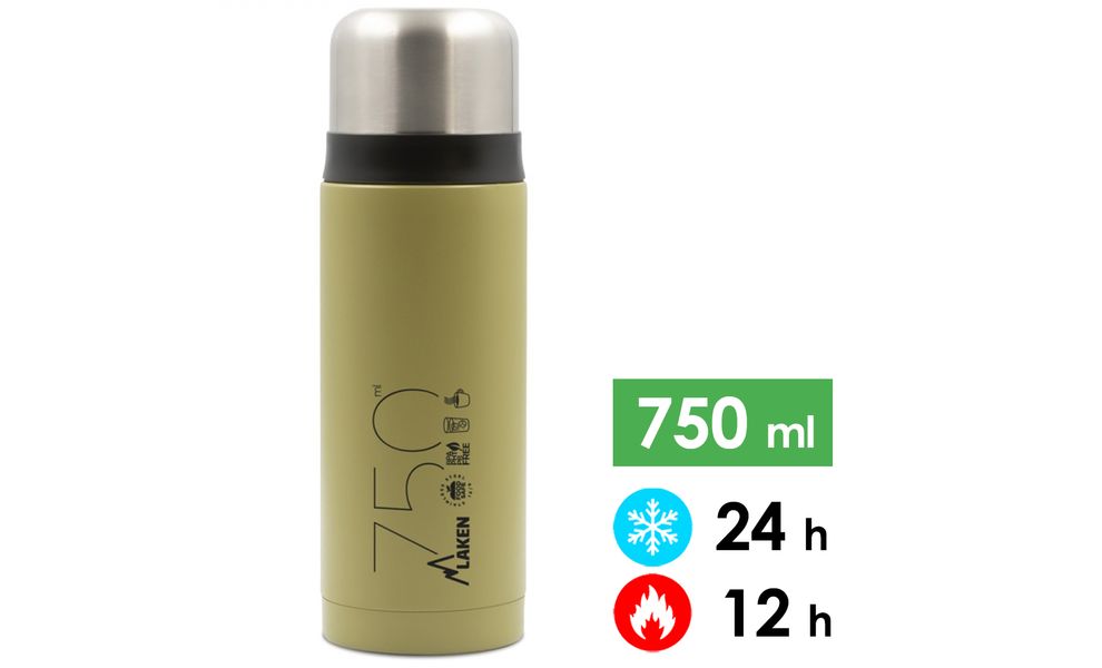 Термос Laken Thermo Liquids Flask  — це вакуумний термопосуд, який збереже температуру ваших улюблених напоїв протягом тривалого часу. Він попіклується як про гарячу каву, так і про холодний чай. Термос має класичну форму, гвинтову пробку та кришку-чашку.