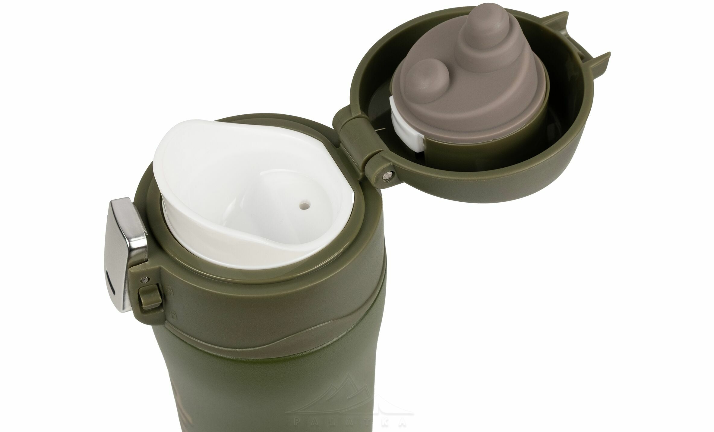 - Кришка-поїлка дозволяє зручно пити з термокружки на ходу, не відкриваючи її повністю.