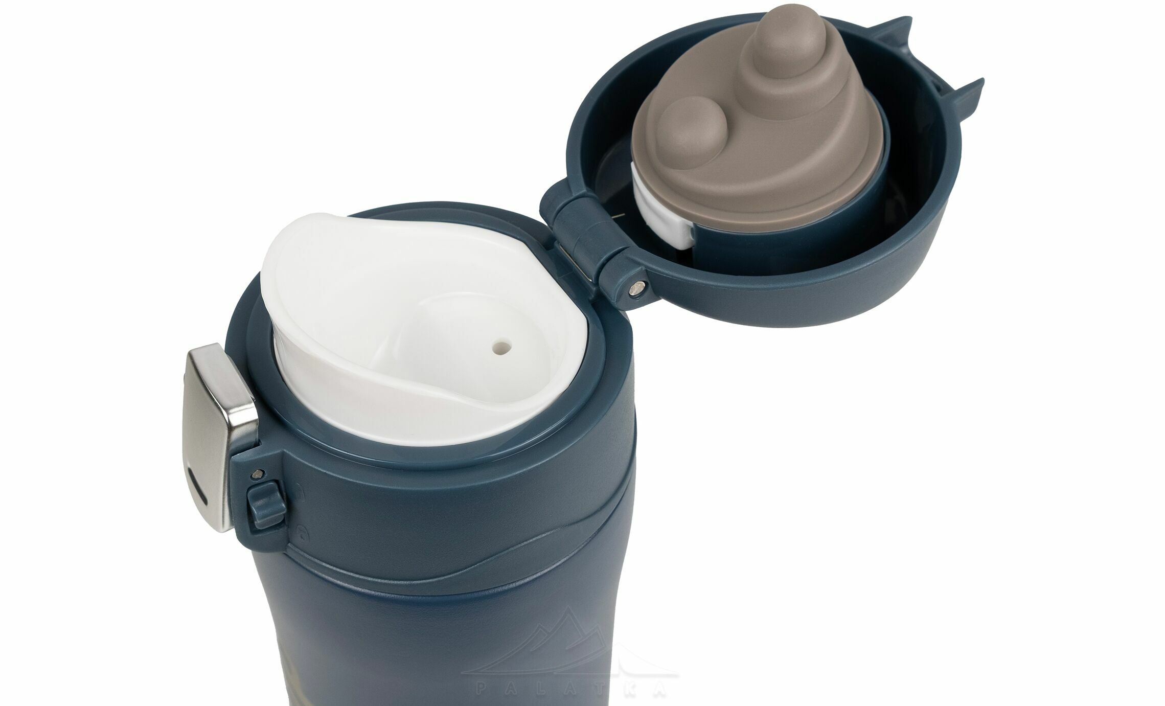 - Кришка-поїлка дозволяє зручно пити з термокружки на ходу, не відкриваючи її повністю.