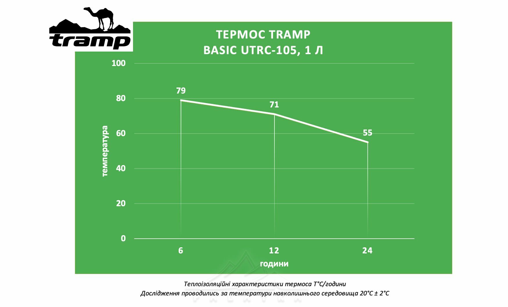 Tramp Basic UTRC-105 — оновлений вакуумний термопосуд серії Basic із вдосконаленим покриттям та покращеними характеристиками, що зберігає температуру як гарячих, так і холодних напоїв протягом тривалого часу. Надійне рішення для щоденного користування в місті, на роботі, у дорозі або під час мандрівок.