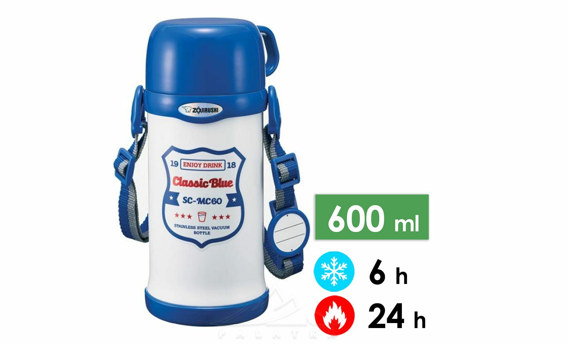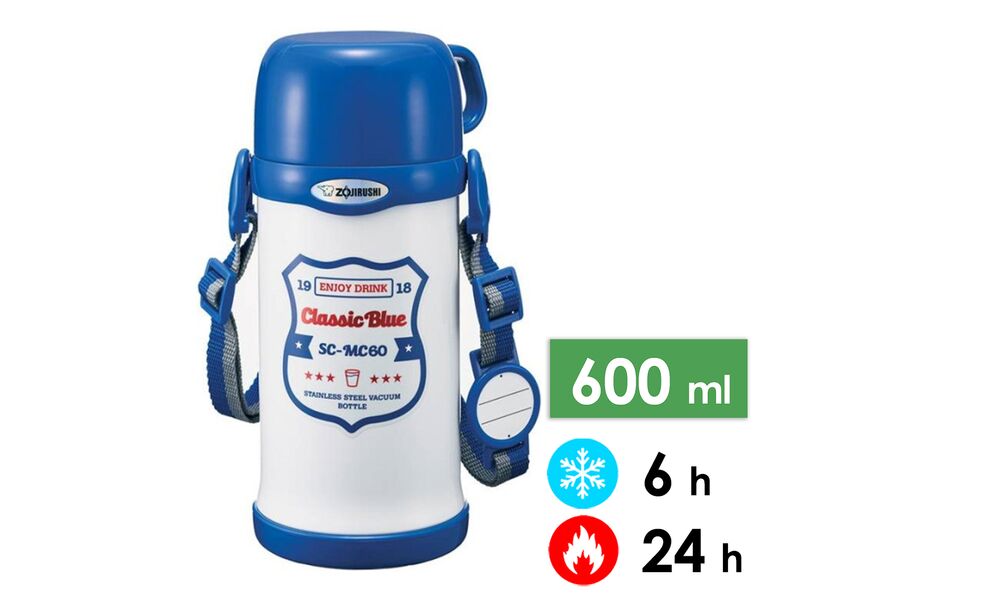 Zojirushi SC-MC60 — це дитячий вакуумний термопосуд з кнопковою пробкою та плечовим ремінцем, який ефективно зберігає температуру як гарячих, так і холодних напоїв протягом тривалого часу. Ідеально підходить для прогулянок містом, школи або активного відпочинку на природі.