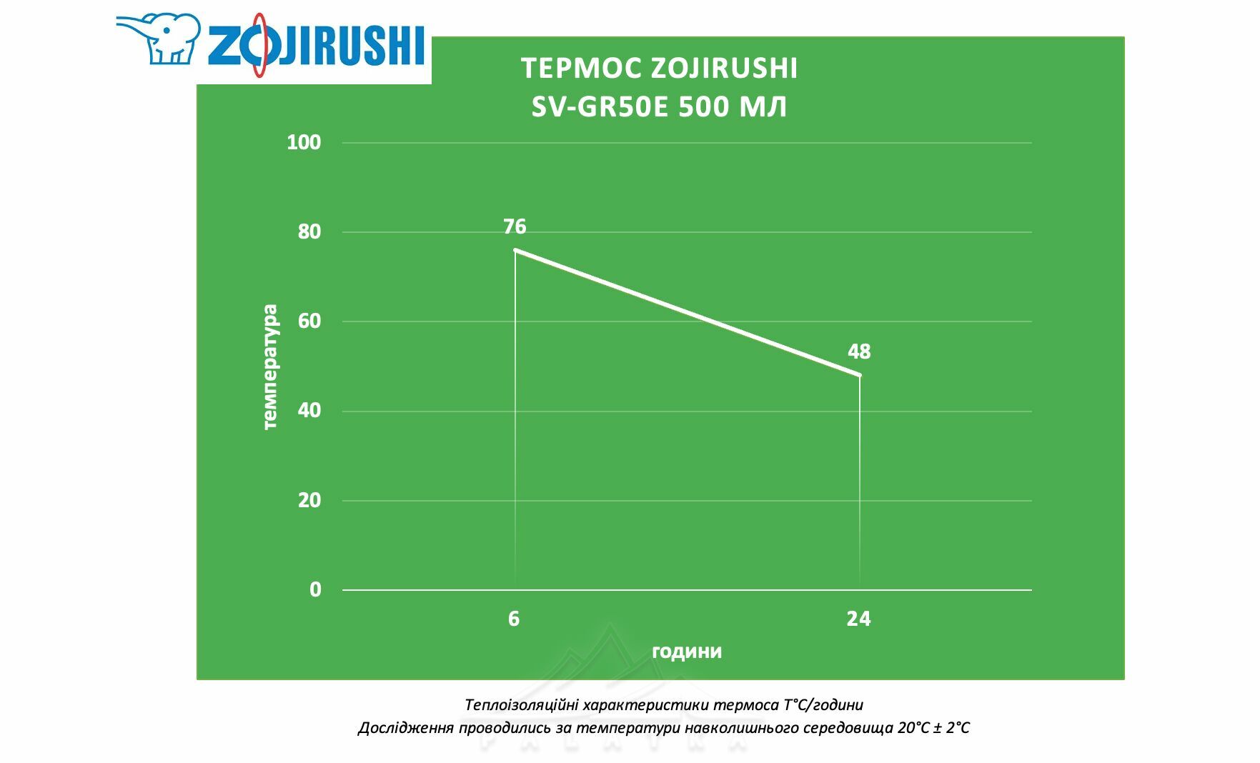 Zojirushi SV-GR50E — один із найкомпактніших і найлегших термосів бренду, оснащений кнопковою пробкою та стильним дизайном, який ефективно зберігає температуру як гарячих, так і холодних страв протягом тривалого часу. Ідеально підходить для щоденного використання в місті, у нетривалих подорожах або під час активного відпочинку на природі.
