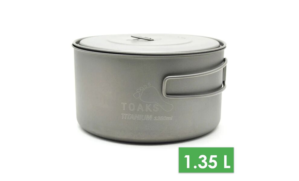 Каструля Toaks Titanium Pot, 1,35 л — легкий варіант для відпочинку та походів. Підходить для використання на пальнику.