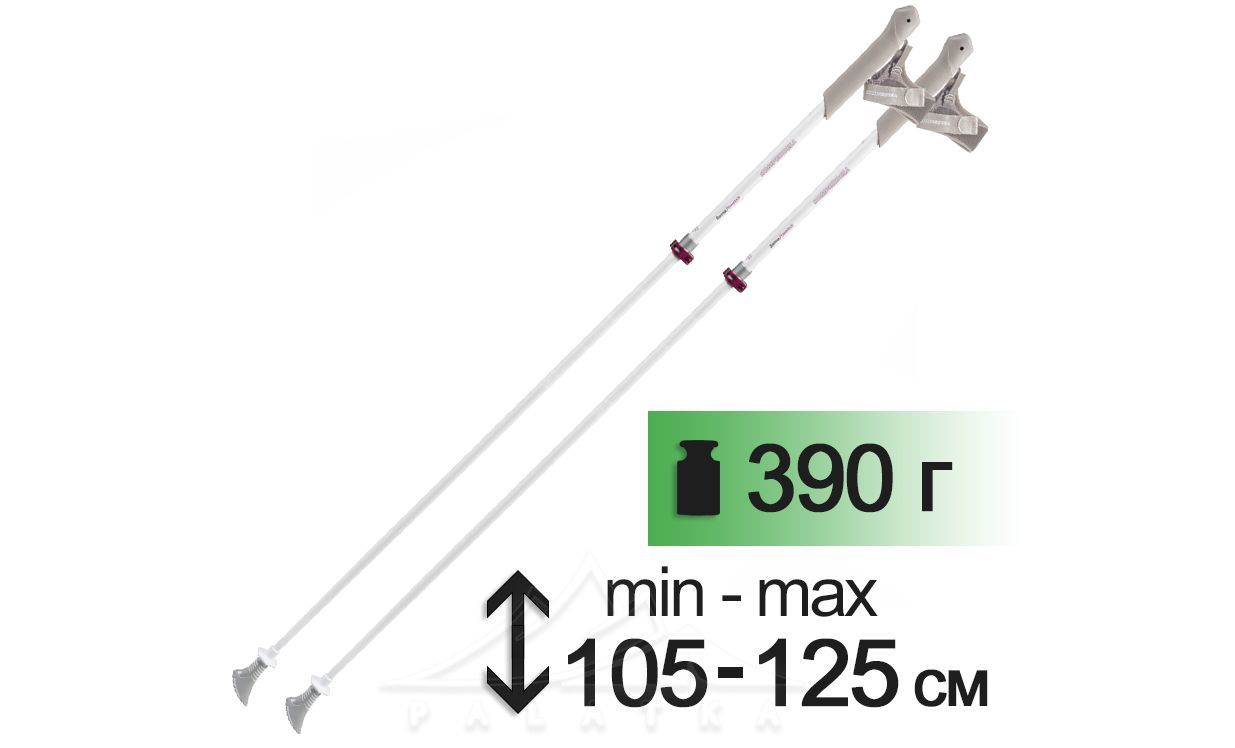 - Телескопічна складна конструкція (2 секції) з можливістю регулювання довжини відповідно до зросту користувача.