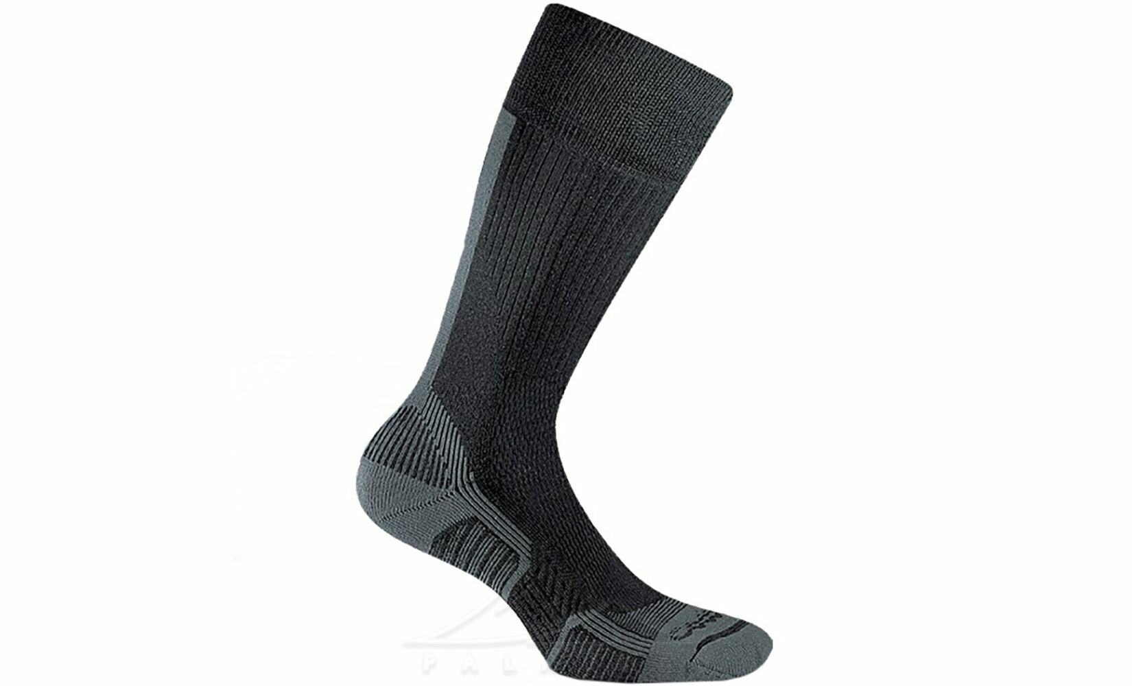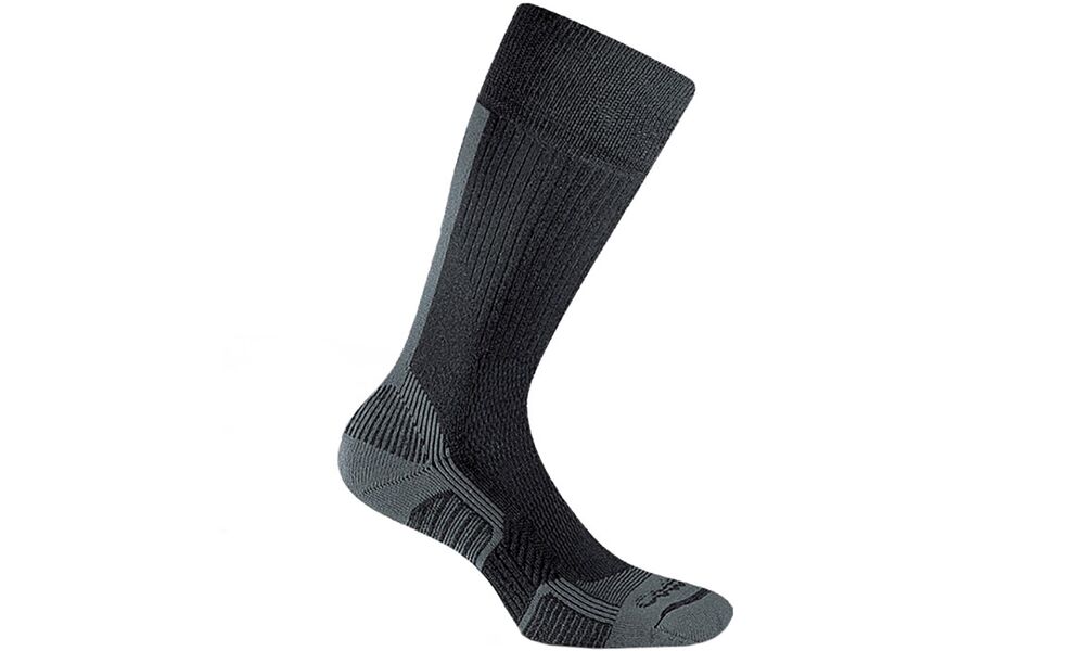 - Еластична трикотажна вставка на підйомі стопи фіксує шкарпетку, запобігає скручуванню, покращує відведення вологи та зменшує тиск у зоні підйому.