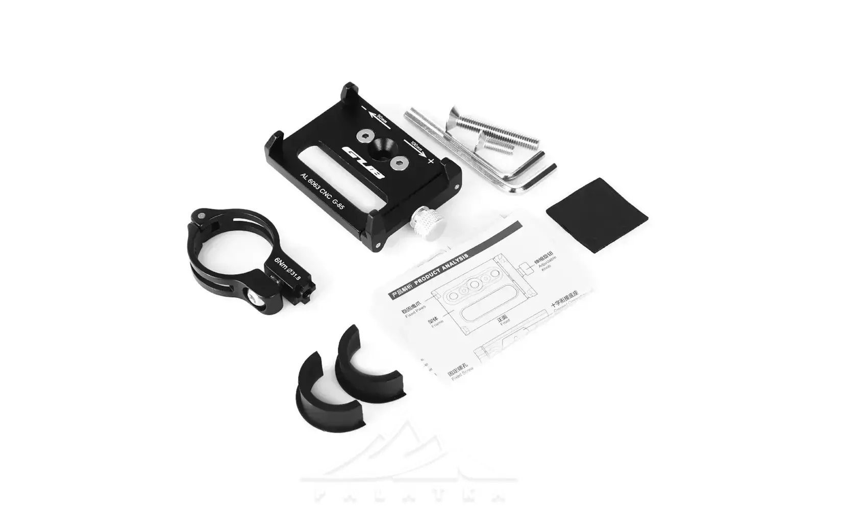 Тримач для гаджетів та смартфонів від бренду GUB, повністю виконаний з алюмінію. Розроблений для встановлення на кермо або винос велосипедів, скутерів чи самокатів. Поставляєтся з усім необхідним для встановлення.