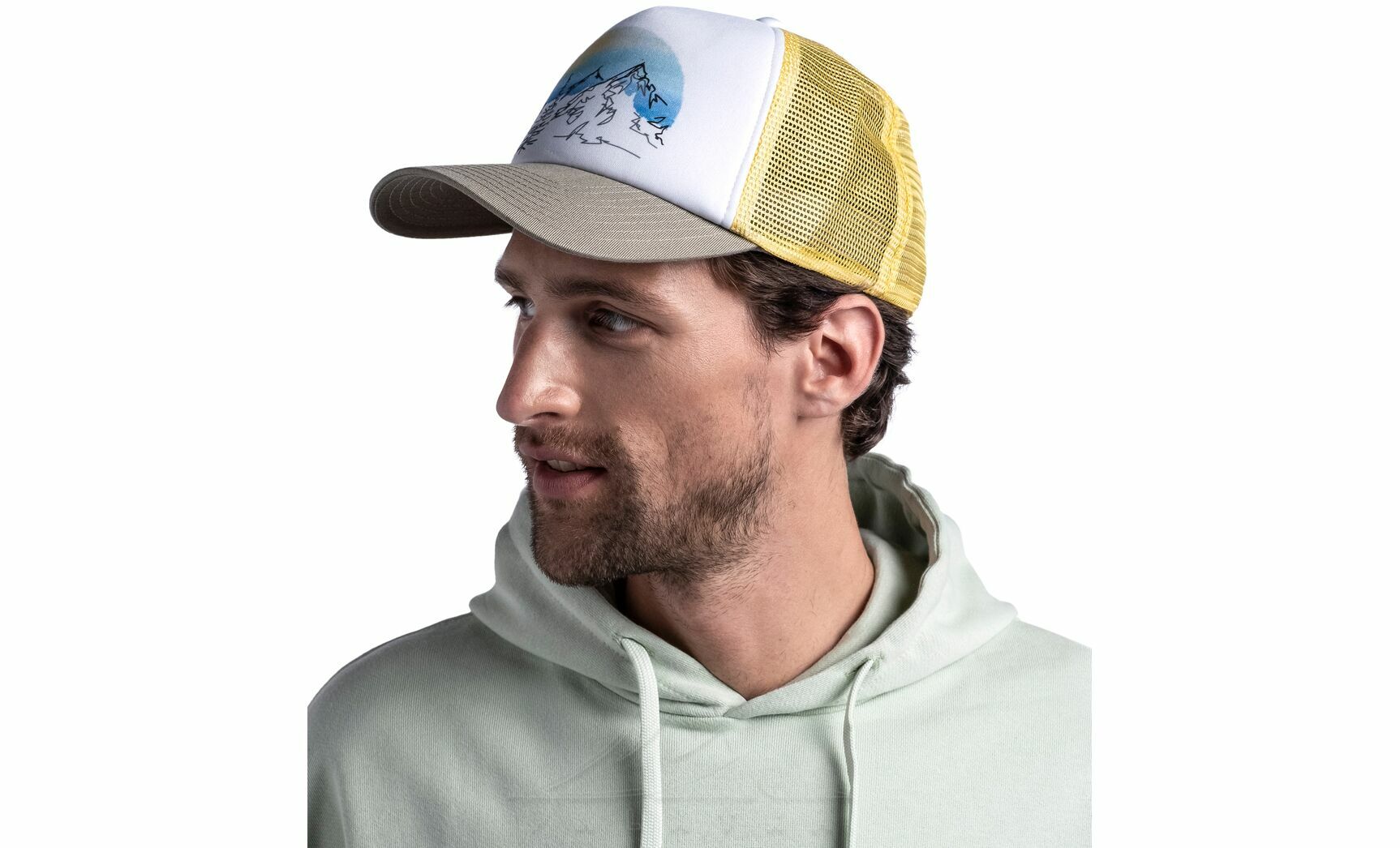Серія кепок BUFF® Trucker — п'ятипанельна, з широкою передньою панеллю, а задня частина сітчаста. Дизайнери запозичили зовнішній вигляд моделі у американських водіїв великих вантажівок 80-х років («trucker» в перекладі з англійської означає «далекобійник»). Кепка виконує наступні функції: