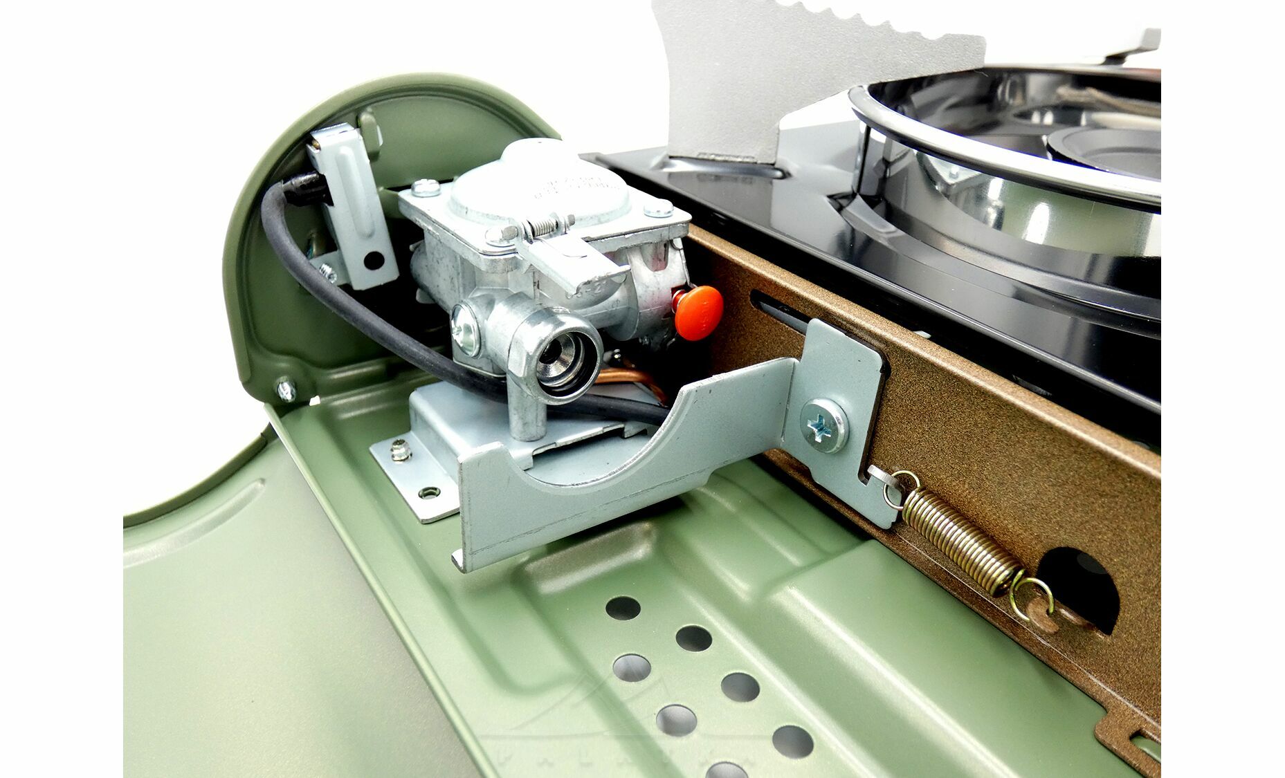- Відсік для газового балону не має задньої стінки, що забезпечує відмінну вентиляцію та запобігає перегріванню балона в середині плитки під час роботи.